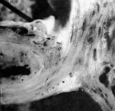 The cardinal and uterosacral ligaments are part of the suspensory apparatus that serves to hold the uterus and upper vagina over the levator plate. The blood vessels and lymphatics from the hypogastric plexus enter and leave the uterus and vagina along their lateral margins, as the vessels connect with their origin from the main internal iliac (hypogastric) vessels. Around these vessels are strong perivascular fibroareolar sheaths closely attached to their adventitia. The histology of these so-called ligaments has been studied repeatedly by many observers, but the findings of Range and Woodburne24 are probably the most accurate. They found that these ligaments consist principally of blood vessels (largely veins), nerves, lymphatic channels, and areolar connective tissue; the connective tissue is more dense lateral to the cervix and vagina. Collagen bundles parallel the veins, and the connective tissue contains many smooth muscle fibers associated with the adventitia of the blood vessels. They found that the loosely arranged connective-tissue mesh strands become stretched or elongated longitudinally in the direction of a force applied to them (Fig. 9). Amreich25 realized that this rich network of blood vessels lateral to each side of the upper vagina and cervix is strenghtened by the connective tissue and muscle sheaths surrounding the valveless blood vessels; he named this the horizontal connective tissue ground bundle. At the cervix of an anteverted uterus this lateral paravaginal condensation of tissues makes a rather abrupt turn anteriorly, following, as it turns, the axis of the lateral side of the cervix (Fig. 10); thus, the cardinal ligament is in reality the same as the horizontal connective tissue ground bundle and serves to supply and to hold both cervix and upper vagina in place over the levator plate. Campbell26 studied the anatomy and histology of the uterosacral ligaments. He found that they are attached to the posterolateral aspect of the cervix at the level of the internal os. There are fibrous attachments from the anterior third of the ligaments that course downward to attach to the lateral vaginal fornices. Near the cervix these ligaments are definite bands of peritoneum-covered tissue. As they course posteriorly, forming the superior boundary of the cul-de-sac of Douglas, they become thinned out with less definite peritoneal ridging. The posterior third of the ligament is fan-shaped and is composed of more delicate strands of tissue that attach to the presacral fascia opposite the lower portion of the sacroiliac articulation. He found there is much individual variation in the thickness and length of these ligaments and recognized that the ligaments do increase in prominence when tension or traction is applied to them. Microscopically, the anterior or cervical third of these ligaments contains, in order of prominence, smooth muscle, fibroelastic connective tissue, blood vessels, sympathetic and parasympathetic nerves, and lymphatics. The intermediate third is made up of connective tissue meshwork with prominent sympathetic nerve ganglia and nerve elements, blood vessels with a few scattered strands of smooth muscle, and some lymphatics. The posterior or sacral third is composed almost entirely of loose strands of connective tissue and intermingling fat; a few vessels, nerves, and lymphatics are present. The uterosacral ligaments thus are folds of peritoneum covering predominantly the pelvic parasympathetic fibers that pass anteriorly from the sacral plexus to the lateral aspects of the uterus. It is very unlikely that, under physiologic conditions, these ligaments have any significant supportive function except possibly to assist in the positioning of the uterus over the supporting levator plate. A general teleologic principle of human anatomy is that nerves usually are arranged in positions where they are protected from trauma. It therefore is unlikely that in the pelvis the nerve-containing uterosacral ligaments should normally function as guy wires to suspend the uterus. The proliferation of connective tissue in the cardinal ligaments and uterosacral ligaments observed during surgery in patients with genital prolapse is probably a secondary pathologic hypertrophy formed in an attempt to compensate for the deficient support of the weakened levator plate. |
