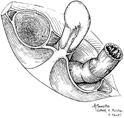 Clinical anatomy is concerned with the anatomic interrelationships between various structures of the living human organism. These relationships in the pelvis and their physiologic alterations along with the degree of independent function of each organ system are the concern of the gynecologist. The anatomic interrelationships in the living differ significantly from those in the cadaver, the study of which forms the basis for descriptions in standard textbooks of gross anatomy. Since the earliest days of medicine, dissections have been performed on, texts have been written about, and anatomy has been studied from elderly, often debilitated, and malnourished female cadavers. The anatomic interrelationships in such bodies are quite different from those found in the healthy, living, well-nourished, younger female. Furthermore, the standard anatomy textbook gives extensive description of only a small number of dissections and bases broad generalizations on this small number. There is no recognition of the large amount of variation that occurs normally and frequently between individuals and at different times of life. The anatomic relationships of tissues and organs of an anesthetized patient are not the same as those of the patient who is wide awake; this is because of muscle paralysis from anesthesia, resting or baseline underdistention of the various organs, and the change in statics caused by position. The horizontal position of the immobile surgical patient provides statics different from those of the vertical and active patient, whose pelvic organs are in varying stages of function and distention. Vaginal reconstructive surgery is concerned with the return of abnormal organ relationships to a usual or normal state. There is no one site or degree of damage that must be repaired or restored; there are many, and they occur in various combinations at various times of life, from different etiologic factors, in varying degrees, and with varying degrees of symptomatology and disability. For years there has often been heated discussion as to whether the more important factor concerned with vaginal position within the pelvis is that of suspension from above (cardinal ligament complex), a view championed by Fothergill, or of support from below (levator ani-pelvic diaphragm), as emphasized by Paramore and Halban. Mengert's classic contribution in this area was to report an experiment whereby a tenaculum was applied to the cadaver cervix, a cord was attached to the tenaculum and run through a fixed pulley, and a 1-kg weight was attached to the opposite end of the cord.1 One by one, starting at the top of the fundus, the lateral supports of the uterus and vagina were cut until finally prolapse of the uterus developed. It was only when the paravaginal tissues had been cut that prolapse developed. “Marked descent of the uterus amounting to actual prolapse never occurred so long as any part of the upper two thirds of the paravaginal or lower two thirds of the parametrial tissues were intact.”1 This experiment convincingly emphasized the importance of the suspensory apparatus. Bonney strongly defended the position that both points of view were correct, that is, the vagina is both suspended from above and supported from below, and that each system could be damaged either singly or together, with the type of resulting genital prolapse reflecting the site or sites of primary damage. It is important for the gynecologic surgeon to recognize the primary site of damage and its etiology; therefore, appropriate steps can be taken in surgical reconstruction to minimize the chance of postoperative recurrence of the genital prolapse. Damage to the suspensory system can give rise to inversion of the upper vagina, often with elongation of the cervix and cul-de-sac hernia; damage to the lower supporting system is more likely to be associated with eversion of the lower vagina, including cyctocele and rectocele. It is evident that there are at least five different anatomic systems responsible for varying degrees of support of the birth canal. These can be injured or damaged separately or in various combinations, but they must be individually recognized and identified if restorative surgery is to achieve its stated goal. The anatomic support systems considered in greater detail include the perineum, including the perineal body; the urogenital diaphragm, including the pubourethral ligaments; the pelvic diaphragm, particularly the pubococcygeus component and the levator plate; the cardinal and uterosacral ligament complex; and the broad ligaments, including the smooth muscle components and the round ligaments. Although each of the above is a separate anatomic unit, they are often interrelated, and additional components may exert synergistic, supportive, or even sphincterlike action, for example, the intact bulbocavernosi muscles contracting in concert with the pubococcygei muscles exert an almost sphincterlike effect on the vaginal outlet. It is uncommon for any of these anatomic units to be individually defective, other than by congenital anomaly. With this exception, damage to these individual units may be either primary or secondary, generally in combination. The combinations are many and must be recognized by the responsible surgeon if correct diagnosis and appropriate surgical remedy are to achieve the desired goal. Equally important is the recognition of active etiologic agents to which corrective attention can be drawn. |