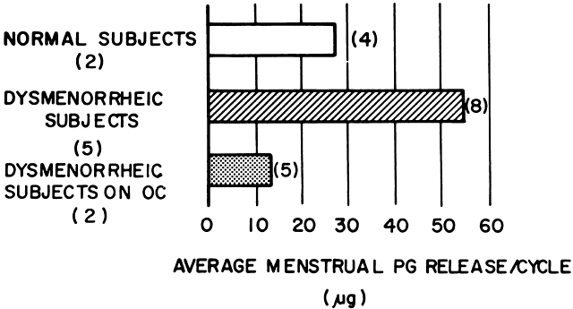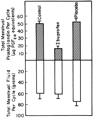 ORAL CONTRACEPTIVES. If the patient desires contraception with the combined oral contraceptive pill, this is the method of choice because she can also get relief from her primary dysmenorrhea. Combination-type oral contraceptives are effective in the treatment of primary dysmenorrhea and were the main method of treatment until the advent of nonsteroidal antiinflammatory drugs. The menstrual fluid prostaglandin levels are reduced to below normal levels in women who use oral contraceptives.19 This reduction in menstrual fluid prostaglandins is brought about through two mechanisms. First, birth control pills reduce menstrual fluid volume through suppression of endometrial tissue growth, giving rise to reduced prostaglandin levels. Second, inhibition of ovulation with the birth control pill retards endometrial development and produces an anovulatory cycle with an endocrine milieu that is essentially similar to the early proliferative phase of the menstrual cycle when endometrial prostaglandin levels are low. The absence of luteal-phase progesterone levels that are necessary for increased endometrial prostaglandin biosynthesis also contributes to the anovulatory mechanism of reducing menstrual fluid prostaglandins. With birth control pills, more than 90% of dysmenorrheic women can be satisfactorily relieved of their primary dysmenorrhea. A trial of oral contraceptives for 3 to 4 months is useful. Women who respond well to oral contraceptives can be maintained on this regimen. However, if dysmenorrhea is not adequately relieved, an appropriate nonsteroidal antiinflammatory drug can be added. The response to the nonsteroidal antiinflammatory drugs can then be monitored as in the patient who is placed on such an agent initially. NONSTEROIDAL ANTIINFLAMMATORY DRUGS. Women with primary dysmenorrhea can be given nonsteroidal antiinflammatory drugs if they do not have any gastroduodenal ulcers or are hypersensitive to nonsteroidal antiinflammatory drugs. Such therapy can be allowed for 3 to 6 months, with adjustment in the doses and the type of nonsteroidal antiinflammatory drugs. If there is no relief, laparoscopy is indicated. If such measures are followed and a proper diagnosis of primary dysmenorrhea is made, 80% to 85% of patients obtain relief. Laparoscopy is necessary only in a small percentage of patients with dysmenorrhea in whom medical therapy has failed. In the event that pelvic disease is discovered at laparoscopy, the appropriate therapy directed to the underlying pathology is instituted, thereby alleviating the dysmenorrhea. If no pelvic pathology is found, one of the newer methods of management, which is less established than using nonsteroidal antiinflammatory drugs, can be employed and becomes one of trial and error, because it is unclear whether any specific pharmacotherapy could be of help. A preliminary study30 found that a calcium channel blocker, such as nifedipine, provided some relief. In the investigator's clinical experience, calcium channel blockers were helpful in difficult cases of primary dysmenorrhea. Other agents that could be resorted to include the betamimetic drugs, but they are less effective than nonsteroidal antiinflammatory drugs and often carry side effects.1,2 These agents probably should not be used on a routine basis, and such attempts are best left to medical centers carrying out systematic studies of them. A noninvasive method of blocking the propagation of pain impulses from the pelvis using transcutaneous electrical nerve stimulation (TENS) has been employed.31 Psychiatric help in the management of these patients who have been relieved with nonsteroidal antiinflammatory drugs and who have no disease in the pelvis might also be appropriate. It should not be construed that dysmenorrhea is wholly psychosomatic, but in the absence of understanding of the basic pathophysiologic mechanisms of the dysmenorrhea, symptomatic treatment with analgesics and psychotherapy to modulate the psychologic factors that may be playing a significant or contributing role to the pain could ameliorate the dysmenorrhea to some extent. Few patients with primary dysmenorrhea fall into this category if a correct diagnosis has been made and appropriate steps in the management of the patient have been taken. Unlike oral contraceptives, nonsteroidal antiinflammatory drugs are taken for the first 2 to 3 days of the menstrual flow, there is no significant suppression of the pituitary-ovarian axis, and there are none of the metabolic effects seen with oral contraceptives, which have to be taken for a minimum of 3 of every 4 weeks. Choosing the most suitable nonsteroidal antiinflammatory drug should be based on its proven clinical efficacy; rapid absorption to produce a quick onset of relief; wide margin of safety with a low ulcerogenecity index; minimal, tolerable, and inconsequential side effects; and long-term safety. The nonsteroidal antiinflammatory drugs should be given as soon as menstruation begins and should be taken on a continuing basis for the first 2 or 3 days and not on an as-needed basis. The latter method clearly aims at suppressing pain, whereas the former approach, which is more likely to be effective in most patients, acts by correction of the derangement in prostaglandin production. Nonsteroidal antiinflammatory drugs appear to relieve primary dysmenorrhea through suppression of menstrual fluid prostaglandins, as has been demonstrated in several studies (Fig. 6). These compounds also have direct analgesic properties.