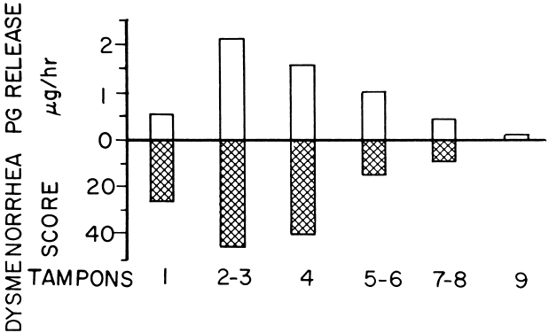 Etiology Behavioral and psychologic factors, uterine ischemia, cervical stenosis or narrowing, increased vasopressin release, increased uterine activity, and increased uterine prostanoid production and release have been implicated in the cause of primary dysmenorrhea. Evidence suggests that most women with primary dysmenorrhea have increased or abnormal uterine prostanoid production and release, giving rise to abnormal uterine activity and therefore to pain.15–20 Although psychologic factors have not been demonstrated convincingly to be the cause of primary dysmenorrhea, their contribution should be considered in patients who have not responded to medical therapy and in the absence of any visible pelvic pathology to account for the pain. Whereas many psychoanalytic formulations have been advanced to explain the basis of dysmenorrhea, none of these reports studied the patients before the development of the dysmenorrhea.7 Such observations may be an accompaniment or the result of the dysmenorrhea but do not generate primary dysmenorrhea.7 Psychologic factors can certainly influence the reactive component of pain and therefore the perception of apparent increased intensity of pain. Anticipation of severe dysmenorrhea each month can itself be expected to engender quite a bit of stress. Dysmenorrhea is more common in working women and in women who scored higher on the Hassle scale, which is a measure of the stresses or difficulties experienced.7 Such a stressful event as dysmenorrhea has been demonstrated to reduce the immune response of the woman on day 26 and days 1 and 2 of the cycle.21 Primary dysmenorrhea itself is not a psychologic disorder, but in its management, the health care provider can enhance the overall efficacy of pharmacotherapy with appropriate handling of the reactive component of pain. Traditionally, cervical dilatation has been performed to relieve primary dysmenorrhea on the basis that the cervical canal is widened. However, there are no objective data to support the suggestion that women in primary dysmenorrhea have a relative stenosis or narrowing of the cervical canal. In a small number of women who do have true cervical stenosis associated with menstrual cramps, the condition is secondary dysmenorrhea. Primary dysmenorrhea occurs only in ovulatory cycles.15,17 Dysmenorrhea occurring in anovulatory cycles is of the secondary type. Primary dysmenorrhea can be readily relieved with administration of oral contraceptive pills, which inhibit ovulation. Some preliminary studies suggest that there may be an increase in circulating vasopressin levels in women with dysmenorrhea during their menstruation.22 However, serial levels before and during menstruation have not been studied adequately. An increase in vasopressin levels, without an accompanying increase in oxytocin levels, can produce dysrhythmic uterine contractions that are more likely to produce uterine hypoxia and ischemia. Using these observations, a preliminary study indicates that the vasopressin antagonist is able to inhibit abnormal uterine contractions and relieve primary dysmenorrhea.23 There is ample evidence to indicate that increased or abnormal production and release of endometrial prostanoids and eicosanoids in many women with primary dysmenorrhea give rise to abnormal uterine activity and result in uterine hypoxia and ischemia.15–20 First, there is a striking similarity between the clinical manifestations of primary dysmenorrhea and the symptoms induced when exogenous prostaglandins E2 or F2α are administered. In both situations, uterine contractions occur, and diarrhea, vomiting, and nausea are common. Second, measurements of prostaglandin levels from luteal-phase endometrial biopsies, endometrial jet washings, and menstrual fluids have shown that there is a significantly higher than normal concentration of prostaglandins in women with painful primary dysmenorrhea. Secretory endometrium, under the influence of progesterone, has higher concentrations of prostaglandins than proliferative endometrium and with no increase in endometrial prostaglandin concentrations reported from endometrium of anovulatory cycles. Many nonsteroidal antiinflammatory drugs that are prostaglandin synthetase inhibitors have been shown to be effective in the treatment of primary dysmenorrhea. With some of these prostaglandin synthetase inhibitors, there are also objective data showing that the relief of primary dysmenorrhea is caused by and accompanied by a concomitant reduction in uterine prostaglandins released during menstruation. In normal women with no dysmenorrhea, there are fluctuations in uterine activity during different phases of the menstrual cycle. These changes in the resting tone, active pressure, and frequency of contractions are caused by changes in ovarian steroid hormone levels that affect the sensitivity of the myometrium to uterotonic substances, changing concentrations of prostaglandins in the endometrium, and other uterotonic substances that may still be undefined. During menstruation in the nondysmenorrheic woman, the uterine resting tone is lowest (<10 mm Hg), the active pressure is maximum (120 mm Hg), and the number of contractions (3 to 4 per 10 minutes) is least, compared with the rest of the cycle.4,5,11,15,16 In dysmenorrheic women, the increased release of uterine prostaglandins produces a significant degree of myometrial hyperactivity that results in uterine hypoxia and ischemia. Four different types of abnormalities of uterine contraction have been observed in women with primary dysmenorrhea, including increased uterine resting tone, increased active pressure, increased number of contractions, and incoordinate or dysrhythmic uterine activity. Most patients with primary dysmenorrhea appear to have increased uterine resting tone. When more than one of these uterine contraction abnormalities are present, they tend to potentiate each other, and pain occurs with a much smaller change in the abnorm