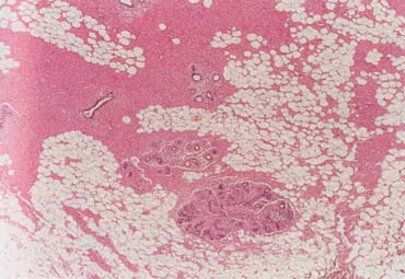Breast cancer is the most common invasive (nonskin) cancer of women. For 2003, it is estimated that there will have been 211,300 invasive breast cancers diagnosed in women and 39,800 female deaths from breast cancer.1 In addition, 55,700 new cases of in situ breast cancer are estimated to be diagnosed in women in 2003.2 The American Joint Committee on Cancer lists 24 different codable histologic types of breast malignancies (Table 1), of which seven are in situ and 17 are invasive (infiltrating).3 Each specific histologic type has its own unique characteristics, biologic behavior, and prognosis when treated. In addition, the optimum treatment varies with each specific histologic type. However, for invasive and in situ breast cancer, as many as 80% of the cases are of the ductal type. Color plates 1 through 16 show typical examples of the histology and cytology of normal breast tissue, fibrocystic changes, fibroadenoma, and invasive ductal carcinoma under low- and high-power magnification. (Color plates appear at the end of the chapter.)