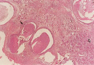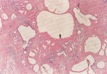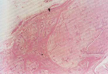 Before the advent and use of mammography, DCIS accounted for approximately 2% of the diagnosed breast malignancies. In 2003, the incidence of diagnosed DCIS is estimated to be somewhat more than 26% of that of invasive carcinoma.2 In a breast center with a large volume of screening mammography, DCIS can account for more than 30% of the diagnosed malignancies. Until the acceptance of breast conserving therapy for invasive cancer, the treatment of DCIS was total mastectomy without axillary node dissection. Adjuvant chemotherapy is not indicated for DCIS. Currently, when breast-conserving surgery is performed, postoperative radiation therapy is usually administered to the breast in an effort to control local recurrences.12,26 Tamoxifen is often indicated for the same reason.34,37 Without irradiation and/or tamoxifen, the risk of recurrence is approximately 1% per year; however, approximately 50% of the recurrences are invasive ductal carcinoma. There is no consensus as to the optimum treatment of DCIS, particularly for lesions less than 1 cm and those with clear surgical margins. The details and specific treatment of the spectrum of DCIS continues to be debated by authorities in the field. Similar to the article on the treatment of invasive cancer, a state-of-the-art (as of 2002), comprehensive, clinical review of the management of DCIS authored by multidisciplinary authorities has been published.38 Both of these review articles are available online at http://CAonline.AmCancerSoc.org and are readable resources for obstetrician-gynecologists and their patients. |