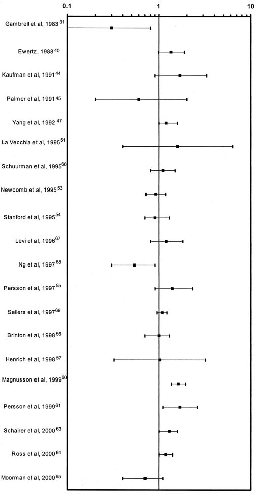 confidence intervals, and few reach epidemiologic statistical significance.