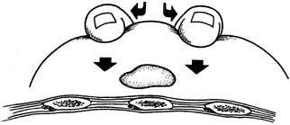 Palpable breast cysts (macrocyst) commonly occur during the late reproductive years of a woman's life (see Fig. 15). By examination, a macrocyst is typically palpable, clearly defined, soft, mobile, and smooth. The borders are distinct. Cysts are often somewhat tender, especially before menstruation. Many cysts may be multiple and/or bilateral. FNA is an effective and efficient method of diagnosing and treating a cyst in the office. As much fluid as possible should be aspired from the cyst (Fig. 16). Only grossly bloody fluid needs to be sent for cytologic evaluation. Cytology of nonbloody fluid is unrewarding and not cost-effective.28 However, after FNA, the area of the cyst must be palpated to be certain there is no residual mass, and the patient should be seen again in approximately 3 months to ascertain if the cyst has refilled. Cysts per se are not premalignant. A benign intracystic papilloma can occur within a cyst and is often associated with bloody cyst fluid. The rare intracystic carcinoma is clinically suspected when the fluid is grossly bloody, there is a residual mass after aspiration, or the cyst has refilled at follow-up examination. In cases of grossly bloody cyst fluid, the patient should be referred to a breast specialist for open surgical excision of the cyst and diagnostic histology. Microcysts are a component of breast fibrocystic changes. These nonpalpable cysts are essentially normal histologic findings. A microcyst is rarely symptomatic. Cysts, both macro and micro, are perceived on mammograms as distinct masses with smooth regular borders. However, mammography does not differentiate a cyst from a solid mass. Ultrasound is effective in differentiating a cyst from a solid mass. A symptomatic cyst requires treatment. |