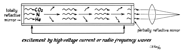 In the laser, however, these photons can further stimulate an already excited atom in its path to release an identical photon that is in phase (coherent), has the same wavelength and color (monochromatic), and travels in the same direction without divergence (collimated). This process is referred to as stimulated emission (Fig. 4).