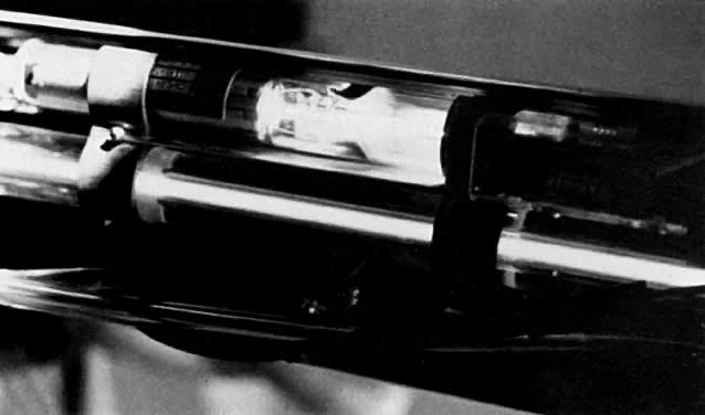 In the case of the CO2 laser, this process occurs within a tube located in the arm of the machine (Fig. 5). This tube is an optic resonator that has a totally reflective mirror and a partially reflective mirror at either end. Light generated is able to bounce back and forth from both mirrors, increasing the energy of the wave with each pass. Laser light is released through one of the mirrors that is partially transmissive and controlled by the foot pedal (Fig. 6).