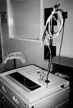 Different colors are produced by different lasers. The argon laser produces a wavelength of 510 nm, making a blue-green light. The KTP produces a wavelength of 532 nm, making its light a green color. The CO2 laser, in contrast, produces a wavelength of 10,800 nm, which is in the nonvisible part of the electromagnetic spectrum; thus, a helium-neon laser is used, which produces a red light to identify the location of the CO2 beam. The laser beam comes out of the port as an unfocused beam. A lens system is used to focus the laser to a focal point. With the hand-held attachment, the focal point is usually 10 cm away from the focusing lens. With laparoscopy, the focal length is longer, taking into account the length of the laparoscope. Fine focusing can be done through a joystick or automatically with a coupler. Also, with the use of wave guides, one eliminates the problem of intermittent focusing of the beam that is associated with the joystick device (Fig. 7).