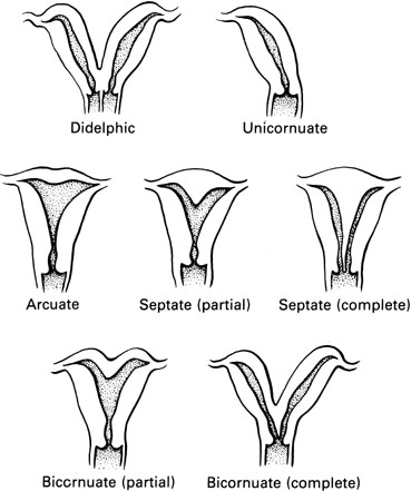 DES, diethylstilbestrol. Modified from the American Fertility Society classification of müllerian anomalies. Fertil Steril 49(6), 1988; and Rock JA: Surgery for anomalies of the müllerian ducts. In Thompson JD, Rock JA (eds): Telinde’s Operative Gynecology, p 688. Philadelphia, JB Lippincott, 1997