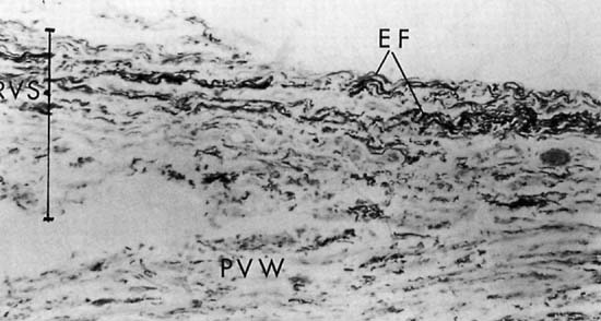 Autologous rectus fascia seems to be an ideal material for fascial reinforcement. This tissue is used commonly for suburethral sling and occasionally is used for sacrocolpopexy. Rectus fascia is biocompatible, strong, and appropriately pliable. Also it is readily available, although the amount harvested is directly related to the risk of incisional hernia. Despite its widespread use in suburethral slings and sacrocolpopexy, the rate of failure of this material is not well known. The surgeon would want this material to remodel to gain strength and appropriate vascularity. FitzGerald and coworkers18 reported on the histologic appearance of rectus fascia used for suburethral slings and found that after implantation there was fibroblast proliferation, neovascularization, and remodeling of the fascia graft. Some linear orientation of connective tissue and fibroblasts occurred, probably along the lines of force on the graft (Fig. 3). A randomized trial comparing materials in this area is needed.