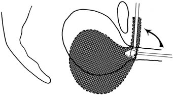 Examination The general physical examination, including pelvic examination, may not confirm the diagnosis of SUI but is important in the assessment of specific pelvic support defects and prolapse severity. After the patient empties her bladder, a general abdominal examination and focused neurologic examination of the lower extremities should be performed. The neurologic assessment of the sacral reflex arc is accomplished by stroking over the labia majora parallel to the labia minora or tapping the clitoris with a cotton swab. A normal response is contraction of the anal sphincter. During pelvic examination, a Sims' speculum or the posterior half of a Graves's speculum may be used for direct observation of the anterior vaginal wall, and then reversed for examination of the posterior vaginal wall. The POP-Q can be performed at this point to assess severity of support defects.11 Palpation of the anterior vaginal wall can help assess for a suburethral mass such as a urethral diverticulum. Before bimanual examination, a vaginal examination to assess voluntary pelvic floor muscle strength (pubococcygeus squeeze) is performed by asking the patient to hold her urine or squeeze her rectum. Before assessment of bladder neck mobility, asking the patient to cough and strain down will evaluate the empty supine stress test. A positive test may indicate severe incontinence. Checking a postvoid residual is also prudent to help exclude chronic retention or overflow incontinence. A standard sterile cotton swab lubricated with anesthetic jelly is passed through the urethra just to the level of the bladder neck. The axis of the applicator is observed at rest and with coughing or Valsalva maneuver. A positive straining angle of 30 degrees or greater from the horizontal indicates UVJ hypermobility (Fig. 5). A straining angle of less than 30 degrees indicates adequate UVJ support. Ancillary Testing A provocative cough stress test or office cystometry can be performed as an extension to the basic examination to confirm the diagnosis of SUI. Leakage of urine/water from the urethra coincident with coughing or straining after retrograde filling of the bladder with a known amount (usually 250 to 300 mL) of fluid demonstrates a positive stress test. This can be attempted first in the lithotomy position, but standing may be necessary to demonstrate leakage. Bladder filling can take the form of office cystometry, which should be performed in the standing or upright sitting position after placement of a catheter. Placement of the catheter can also drain the bladder for determination of postvoid residual. Attachment of a 60-mL catheter tip syringe to the catheter aids in filling, which should be performed in 50- to 60-mL increments with sterile water. First sensation, fullness, and maximum cystometric capacity can be approximately determined during the filling phase. The syringe should be elevated 10 to 15 cm above the symphysis pubis, with close observation of the meniscus. Rising of the meniscus, sometimes associated with the patient's urge to void or loss of fluid around the catheter from the urethra, indicates a detrusor contraction, confirming urge incontinence. After filling to maximum capacity, the catheter is removed and a cough test is performed to assess for SUI. Multichannel cystometry can also be performed with pressure transducer catheters in the bladder to detect bladder pressure and in the vagina or rectum to assess intra-abdominal pressure. The subtraction of the two values (bladder pressure minus abdominal pressure) reveals the true detrusor pressure and may show contractions in patients with detrusor overactivity (formerly termed detrusor instability).4 This more exact study allows calculation of Valsalva leak-point pressures (VLLP). During the filling phase, at predetermined volumes (usually 150 and/or 200 mL), the patient is asked to gradually strain down and the point of fluid leakage is marked. The VLLP is calculated by subtracting the bladder pressure value at the moment of leakage from the baseline bladder pressure. Assessment of urethral closure pressures may also be performed as part of the urodynamic evaluation. The urethral pressure catheter, which may have dual leads for the bladder and urethra, is slowly withdrawn from the bladder by a puller. In addition to assessing the maximum urethral closure pressure (MUCP), functional urethral length, evaluation of the continence zone, and pressure transmission profiles can be obtained. Multichannel urodynamics can be helpful in the exclusion of detrusor overactivity incontinence, determination of normal bladder capacity (usually more than 250 to 300 mL) and evaluation of voiding dysfunction before any planned procedure for suspected SUI. Occult incontinence in patients with significant POP can be determined by cystometry or stress test. Reduction of prolapse with tampons, a pessary, or speculum can straighten out a previously kinked urethra that may now show fluid loss with stress. Additionally, determinations of VLPP and MUCP in patients with SUI have helped guide therapy, especially in patients suspected of having a poorly functioning urethra. Specifically, a MUCP of less than 20 cm H2O has been correlated with an increased risk of failure of retropubic suspension in patients with SUI.12,13 When this value has been used as an indicator for sling surgery in SUI patients, the success rates have been excellent.12,14 Other researchers have proposed that a VLPP of less than 60 cm H2O is indicative of a weak sphincter15 and mandates sling surgery for repair. There continues to be debate within the research community regarding the diagnosis of a poorly functioning sphincter and labeling patients with the condition of ISD. Using a combination of historic and clinical criteria appears to be the most prudent when evaluating the urethra. Table 2 lists historic and clinical characteristics for classic incontinence caused by hypermobility in contrast to inconti