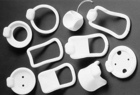 Conservative treatment should always be considered and offered first to patients presenting with symptoms of SUI. Most patients who present with uncomplicated SUI can be evaluated by the guidelines delineated by the AHCPR: a thorough history with voiding diary, general physical and pelvic examination, postvoid residual determination, and urinalysis. Primary treatments should center on lifestyle alterations, pelvic muscle rehabilitation, pessaries, and, perhaps, trials of pharmacologic therapy before any more advanced work-up or referral to a specialist. Lifestyle Alterations Most patients have already altered many of their usual activities before seeking medical help. Obvious alterations include having the patient empty her bladder before physical activity, regulation of caffeinated beverage and fluid intake, and wearing protective pads. Job or activity alteration is seldom a reasonable avenue, because the patient usually has discontinued the activity or has considered and rejected this option. Patients with chronic obstructive pulmonary disease, asthma, and other related lung diseases should seek optimal control of these conditions. Although one study of more than 600 women, most referred to a specialist for lower urinary tract symptoms, did show an OR of 2.2 for SUI in former and current smokers;18 no studies have been performed to demonstrate that cessation of smoking will alleviate symptoms. Needless to say, cessation of smoking and weight loss should always be encouraged, but reliance on these changes can lead to frustration. Of note, though, two small studies did show subjective improvement in SUI in women after weight reduction induced by bariatric surgery for morbid obesity.19,20 Mechanical Devices Numerous devices aimed at nonsurgical correction of stress urinary incontinence have been developed over the years. Almost all of them have been removed from the United States market for various reasons, usually infectious or compliance issues. The primary devices used now for correction of SUI are pessaries (see Fig. 6), some of which have been designed with added incontinence knobs. These devices are fitted in the office but can be removed and replaced by patients when they expect to be in situations that aggravate or result in incontinence. Alternatively, in the elderly or less agile patient, the pessary can be fitted and the patient may return periodically for removal and cleaning (i.e., every 3 to 4 months). Great vigilance to assess for urinary retention should be taken during the initial trial period if the patient is not removing it herself. These devices primarily act to help support the bladder neck or partially occlude the urethra during times of increased physical stress, acting as a mechanical object restricting excess mobility and keeping pelvic anatomy in a normal position. Pelvic Floor Rehabilitation Kegel described a pelvic muscle exercise program in 1948 that has formed the basis for many techniques of exercising the appropriate muscles.21,22 Pelvic floor muscle training (PFMT) is best taught by a therapist who can instruct the patient on which muscles to exercise. Many formulas have been used for instruction, but the successful ones include use of maximum strength contractions for 10 seconds with 15 seconds of rest between contractions. One program starts with 15 contractions per day, gradually increasing to 45 contractions per day. The patient should keep a record of the number of times the exercises are performed, and she should be seen for follow-up weekly as part of pelvic rehabilitation program. Maximum effect should be seen at 12 weeks, although benefit may continue to increase up to 24 weeks, especially in the elderly. Of patients who adhere to a pelvic muscle exercise program, approximately one-quarter at most will be cured,; however, importantly, 40% to 60% achieve significant improvement in symptoms and may avoid surgery. Other methods of patient instruction include pressure-monitoring devices (perineometers), which show the patient a response based on the effectiveness of her contraction and may include auditory signals. Vaginal weighted cones (StepFree; Timm Medical Technologies, www.timmmedical.com; Kegel Exersize Kones; Milex, www.milexproducts.com) may also be used to strengthen the pelvic floor to aid in continence. The patient must contract the pelvic floor to retain the cone, which is used twice daily for 15 minutes. As pelvic floor strength increases, higher weighted cones may be used in stepwise fashion from 20 100 g.23 A recent Cochrane Database review reaffirmed the usefulness of PFMT for SUI with some suggestion that it may be more effective than electrical stimulation (discussed later) or vaginal cones.24 Functional Electrical Stimulation Functional electrical stimulation (FES) is another form of conservative therapy that results in a passive Kegel contraction. FES has been used in Europe for more than 30 years for both stress and urge incontinence, with some reporting improvement rates as high as 60%, a figure confirmed by a double-blinded placebo controlled trial in the United States.25 FES is delivered to the patient through a vaginal probe or conducting pads connected to a small, portable, battery-operated unit (Fig. 7). The unit delivers an electrical charge to the nerves, which innervate the surrounding pelvic muscles; these muscles, in turn, contract in response to the stimulus. The settings are in the range of 65 milliamperes, 5 seconds on and 5 to 10 seconds off, 50-Hz frequency, and duration of 15 to 30 minutes twice per day. Treatment is continued for 3 to 6 months to achieve maximum benefit.