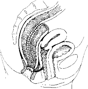 Repair of the fistula should take into consideration the cause of the fistula, and the presence of acute or active inflammation. Surgery should be delayed until local inflammation and sepsis have resolved.15 Obstetrical fistulas will close spontaneously in up to 50% of patients, lending further support to waiting after the injury has occurred. Superficial anovaginal fistulas may be treated with fistulotomy or reopening of the episiotomy. Layered closures through vaginal or transperineal approaches and endorectal advancement flaps may be necessary to reconstruct the rectovaginal wall and anal sphincter. The procedure chosen is determined by surgeon preference. Fecal diversion via a colostomy is rarely needed for first-time repairs; however, it should be considered if multiple previous attempts have failed. Crohn's disease should be in remission before any surgical intervention, and at times medical management alone can control these rectovaginal fistulas. Surgical treatment should be minimized in Crohn's patients. If the rectum is severely involved with Crohn's, proctectomy and permanent fecal diversion may be the only surgical option. Treatment of malignant fistulas depends on whether the cancer is resectable, and radiation and chemotherapy may be used in conjunction with surgery. Palliative or curative diverting colostomy or bowel resection with colo- or ileo anal pull-through procedures may be required for malignancy- or radiation-related rectovaginal fistulas. Fibrin glue has also been used for rectovaginal fistulas; however, the tract is usually too short to hold the fibrin glue in place and results have varied. |