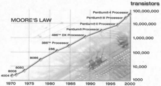 Computing technology continues to experience an exponential growth. Over the past several decades,Moore's law has described an important factor in this expansion.5,6 Gordon Moore, a cofounder of Intel, noted in the mid 1960s that technology had been doubling the density of transistors on integrated circuits every 12 months. This meant that computers were periodically doubling in capacity and in speed per unit cost. In the mid 1970s, Moore revised his observation of the doubling time to a more accurate estimate of approximately 24 months, and that trend has persisted with minimal change through the end of the past century (Fig. 1).