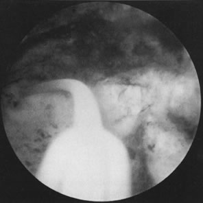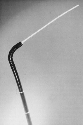Tubal Cannulation Fallopian tube obstruction is a significant factor in infertility in approximately 30% of infertile women. Proximal obstruction of the fallopian tubes is present in about 10% to 20% of women having hysterosalpingography as part of their infertility evaluation. For this reason, laparoscopy is necessary to rule out physiologic spasms and evaluate other fallopian tube or pelvic pathology. When proximal fallopian tube obstruction is confirmed by laparoscopy, the patient becomes a candidate for surgical reconstruction, particularly when the fallopian tubes are found to be normal externally on laparoscopic examination. Clinical experience has demonstrated that women subjected to microsurgical treatment of proximal fallopian tube obstruction did not consistently show fibrosis, but did show simple obstruction of the tubal lumen by debris or other proteinaceous material plugging the tubal lumen. Zulak and colleagues51 described amorphous material present in the tubal lumen on histologic examination in 6 of 18 (33%) patients who were operated on for proximal fallopian tube occlusion. Three patients (17%) had tubes without occlusion and with normal anatomy. Finally, 7 of 18 patients (39%) had tubal fibrotic occlusion or salpingitis isthmica nodosa (SIN) on histopathologic evaluation. Therefore, of the patients who had surgery and underwent histopathologic evaluation of the tubal segments removed, more than 50% demonstrated pseudo-occlusion or obstruction produced by debris or thick mucous tissue. Attempts at tubal cannulation date back over a century, but the major initial attempts at tubal cannulation began with tubal sterilization from the 1930s to the 1970s.52 Early in the 1960s Menken52 introduced the technique of tubal cannulation that was later improved by Quinones in the early 1970s.11,25 Nonetheless, because of the caliber of the catheters and the materials with which they were made, tubal cannulation was not easily accomplished in patients with tubal occlusion. With the introduction of much softer and thinner catheters, derived from experience with angiographic techniques using coaxial catheters, tubal cannulation was made easier, safer, and more reproducible. Although tubal cannulation with the new coaxial catheters began with the use of fluoroscopy, hysteroscopy soon was found to have an advantage in facilitating the cannulation technique. In conjunction with laparoscopy, it permitted not only cannulation, but also evaluation of the pelvis and treatment of additional problems affecting the fallopian tube, ovaries, and particularly peritubal adhesions. It also helped in monitoring cannulation and direct assessment of tubal patency. While osteal selective chromopertubation were performed early in the 1970s with the introduction of modern hysteroscopy, this technique was extended and adapted to fluoroscopy. Nonetheless, there are drawbacks with fluoroscopy. With this technique it is difficult to rule out tubal spasm, which is better assessed under general anesthesia and by laparoscopy. In the absence of laparoscopy, many patients undergo tubal cannulation only for a temporary physiologic spasm, which is why gynecologists have preferred a hysteroscopic approach using laparoscopic control. Some patients may benefit from fluoroscopic cannulation, particularly when laparoscopy is contraindicated or has been recently performed and normal findings obtained. Even in this latter case, however, if fluoroscopic cannulation fails, the patient should undergo a hysteroscopic cannulation attempt before a decision is made to perform laparotomy and microsurgical reconstruction or, in some patients, in vitro fertilization and embryo transfer attempt. Tubal cannulation has variations, particularly in the use of straight coaxial catheters versus catheters with distal balloons to distend the tubal cornual regions. It seems clear from the published reports, however, that there is no difference in the final outcome, and the simplicity with which simple coaxial catheters cannulate the fallopian tubes makes them more appealing to the practitioner. The cumbersome steps in dilating the tubal intramural portion as performed in angiography may not be necessary, particularly because the fallopian tube, with its special compliance after being distended, recovers its normal anatomy quickly. Although the technique of balloon distention is most useful to flatten an atheroma and distend a vessel, in dealing with the intramural portion of the fallopian tubes in which the obstruction must be released, dilatation of this area is not necessary (Figs. 42 and 43).