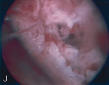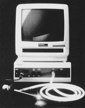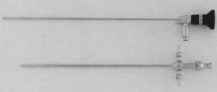 Most hysteroscopes have a 4-mm OD telescope with a foreoblique (30°) angle of vision to permit visualization of the uterotubal areas. The resectoscope has a 12° to 25° foreoblique view, most useful in obtaining a good visualization of the working electrode as it is moved forward by a spring-loaded mechanism. High-intensity Xenon light is most useful, particularly when using video cameras. Video cameras with high resolution and magnification simplify hysteroscopic evaluation and surgery, providing excellent resolution, comfort to the operator, and the ability to share the procedure with the operating team. The findings and results can be shared with the patient (Figs. 11, 12, and 13).