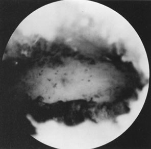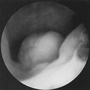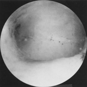 *Normal hysterograms; only 30 confirmed. † Contact hysteroscopy. (Valle RF, Sciarra JJ: Current status of hysteroscopy in gynecologic practice. Fertil Steril 32:619, 1979) The hysterosalpingogram can provide information about other areas that hysteroscopy cannot, for example, tubal lumen symmetry, suspicion of salpingitis isthmica nodosa, diverticula, normal or abnormal tubal epithelial folds, and tubal patency. Hysteroscopy and hysterosalpingogram are not exclusive of each other but are complementary, and should be used as such. Because hysterosalpingography is easier to perform and interpret than hysteroscopy, less expensive, and provides valuable information about the uterine cavity and fallopian tubes, it should continue to be the first line of investigation in the evaluation of the infertile woman. Hysteroscopy should be used to assess the normal hysterosalpingogram to rectify or confirm previous abnormal hysterographic findings (Table 3).9–12 The atraumatic introduction of the diagnostic hysteroscope through the endocervical canal provides an excellent method for evaluating this previously inaccessible area. Scars can be ruled out, as can structural abnormalities of the endocervical folds and glands, and adhesions or stenosis of the internal cervical os. The cornual regions of the uterus and the uterotubal junctions have been difficult to evaluate without direct visualization. Adhesions, small polyps acting like valves, sometimes occlude these areas, which can be thoroughly explored by direct visualization. These anatomic lesions can be treated concomitantly (Figs. 14, 15, 16, 17, 18, 19, and 20; Color Plate 1A and B). Table 3. Comparison of Hysteroscopy and Hysterosalpingography