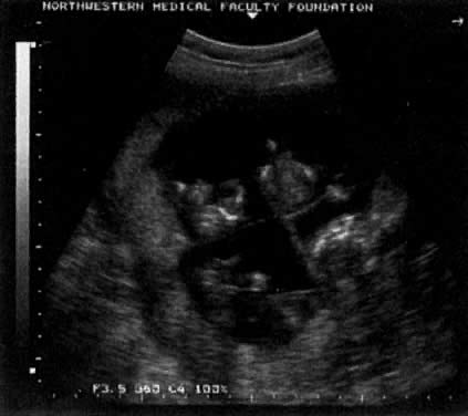The literature is full of reports of anomalies and syndromes identified during the 10- to 14-week ultrasound examination; the reader is referred to the excellent review by Souka and Nicolaides.26 It is very interesting to note that chromosomally normal fetuses with increased nuchal translucency are at significantly increased risk for cardiac abnormalities.27 Screening for congenital anomalies at this gestational age requires great expertise; currently, general screening of the population at this gestational age is rarely indicated. The reader is referred to the review by Yagel and co-workers,28 who outlined the limitations of early pregnancy scanning for fetal anomalies. |