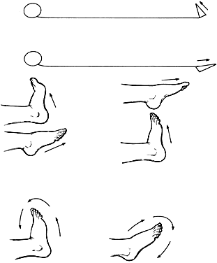 Neck and Shoulder Muscles The exercise for the neck and shoulder muscles is done in the tailor sitting position (i.e. sitting like a tailor with knees flexed) or standing17 (Fig. 7). The patient drops her head forward and gently circles it to the left, upward, to the right, and forward in as large an arc as possible. This is done slowly and deliberately and is repeated on alternating sides, while being careful not to place pressure on the cervical vertebrae The shoulders are raised toward the ears, pulled backward, and slowly circled down and forward. This exercise should be repeated several times; it can also be done with the woman's fingertips on her shoulders while lifting and circling the elbows forward, upward, and backward. Care must be taken to keep the back straight and to keep the chin from poking forward. These exercises are helpful in releasing tension in the neck and shoulder muscles and should be followed by postural alignment of the head, neck, and shoulders. Upper Back and Abdominal Side Flexors With the patient in the tailor sitting position or standing with legs apart for balance, the arms are bent at the sides, and the fingertips are placed on the shoulders. The right arm is stretched upward as the woman inhales (Fig. 8). Keeping the torso erect, the patient stretches her rib cage and upper back and then slowly lowers her arm to the starting position while exhaling. This is repeated with the left arm and then with both arms at once. The patient should progress to stretching her right arm and bending to the left while keeping her torso in alignment; the patient should then repeat this exercise by stretching her left arm and slowly bending to the right (Fig. 9). These exercises allow for greater vital capacity by stretching the rib cage and upper back and strengthening the abdominal side flexors in preparation for postpartum recovery. When the patient's posture demonstrates kyphosis, the pectorals are usually shortened; these stretching exercises are most beneficial in correction of this problem. Breast Support In the second and third trimesters, when breasts enlarge and increase in weight, as well as during the postpartum period, additional support of the breasts is necessary. Strengthening of the pectoral muscles, which support the breasts, is achieved through use of an easy exercise. In the sitting position, the patient puts her hands together, as in prayer, with her elbows flexed at shoulder level. She slowly presses her hands together (Fig. 10). The position is held to a count of four and slowly released, and the exercise is repeated several times. Normal, regular breathing should accompany this exercise. Adductors and Hamstrings At one time it was thought that pregnant women should become accustomed to stretching of the adductors and internal rotators of the thighs for added comfort in expulsion. It was argued that use of stirrups for delivery put strain on these muscles as well as the hip and pelvic joints, and that with conscientious practice of some stretching exercises, the associated discomfort could be decreased. Incorrect teaching or learning of the exercise could lead to subluxation of the pubic symphysis as a result of too-vigorous pressure on the knees or a bouncing movement, which initiates the stretch reflex, causing a rebound with further shortening and protective splinting of the muscles.18 The following exercise not only allows for some stretch of the adductors but, more importantly, allows for stretch of the tight hamstrings and low back extensors.17,18,57,60 The patient sits on the floor with her legs extended and separated as widely as comfortable and her hands stretched forward with her arms kept at shoulder level. Gently and slowly, she flexes forward from the hips, maintaining her arms parallel to the floor while stretching them forward, not toward her toes (Fig. 11).At first this movement may feel uncomfortable, but with practice the discomfort eases. No jerking or bouncing movements should be done, only stretching forward slowly, holding for the count of four, and slowly releasing to the starting position.57 Exercises Aiding Circulation As discussed in the section on cardiovascular and respiratory changes, pressure from the enlarged uterus, dependency edema, dilated blood vessels, and blood stasis cause swelling in the lower extremities, fingers, and hands. Exercises to reduce swelling and improve blood circulation decrease patient discomfort and fatigue. To increase circulation in the legs and reduce edema of the feet, alternate flexion and extension of the ankles causes pumping action of the calf muscles that promotes the flow of blood (Fig. 12). These exercises should be repeated six to eight times and done slowly. Pointing of the toes and extreme plantar flexion may result in leg cramps and therefore should be avoided. Rotation of the ankles in wide circles, first in one direction and then the other, is another excellent exercise (see Fig. 12). The effects of this exercise on circulation can be enhanced if the legs are supported and raised higher than the hips so that gravity assists in return blood flow.