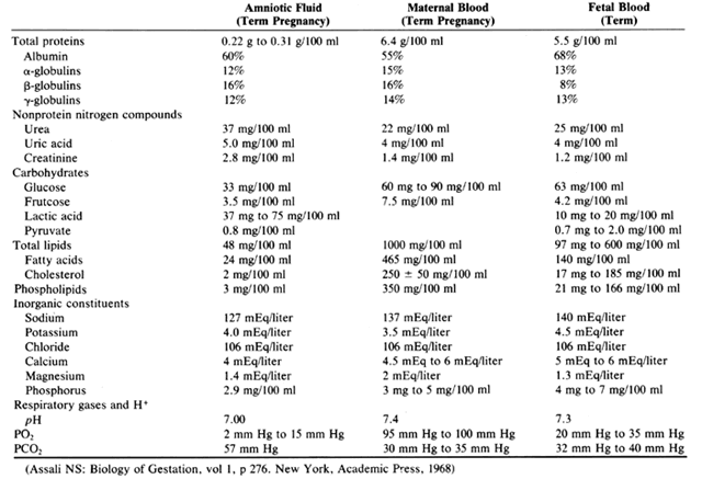 The fat-soluble vitamins are transported in the plasma bound to proteins, sometimes in lipoprotein complexes. The mechanisms and ease of release to the placenta are unknown, and transfer is believed to be by simple diffusion. Levels of the fat-soluble vitamins in the fetal blood are lower than those in maternal blood. The water-soluble vitamins are found in the fetal blood at levels higher than those in maternal blood, indicating that transfer may be by active transport. The mechanisms are uninvestigated, however. Most cations and anions are transported with relative ease. The fetal concentrations of total Ca2+ are higher than the maternal plasma concentrations, and there is a net flux of Ca2+ across the placenta, as evidenced by fetal uptake. Calcium occurs in plasma in the protein-bound form and the free ionized form. If we assume that Ca2- crosses the placenta only in the free ionized form, either there is a sufficiently large electrical potential difference across the exchange membrane to account for the higher fetal than maternal concentrations or there is active transport of Ca2+ across the placenta. The concentrations of phosphates are also much higher in fetal than in maternal plasma. As with Ca2+ , there must be either a transplacental potential difference or active transport to explain this difference. Iron is transferred preferentially to the fetus by active transport and achieves a higher concentration there than in the mother. In maternal plasma, iron is bound to a protein, transferrin, that binds to receptors on the trophoblast. The iron is then removed, leaving an empty molecule (apotransferrin) that returns to the maternal circulation to acquire more iron. The unbound iron then is actively transported to the fetal side, where it is taken up by fetal transferrin. There does not seem to be a retrograde transfer of iron from the fetus to the mother. Copper crosses the placenta with relative ease; zinc apparently is transferred much more slowly. The mechanisms of transfer are unknown. Despite their large molecular size, maternal plasma proteins also appear in the plasma of the fetus. The mechanisms by which passive immunity is conferred to the developing fetus are the most thoroughly studied aspects of placental protein transfer. Differences in transfer rates among proteins cannot be explained by molecular size, because γ-globulins, specifically γG and γA, are more than twice the size of albumin but are transferred to the fetus at a rate faster than that of albumin. Several hypotheses have been proposed to explain the mode of selection and transport of immunoglobulins, but all involve a combination of binding of immunoglobulins to specific receptors in the placental membrane and pinocytosis, a process somewhat analogous to phagocytosis by macrophages. Pinocytosis is an active cell process, like active transport, it requires the input of energy. Although these processes have been studied most extensively in the yolk sac placenta of rabbits, guinea pigs, and rats, the same events apparently occur in the chorioallantoic placenta. Immunoglobin receptors have been demonstrated on human placental membranes, although they have not been chemically characterized. Albumin, glycoprotein, and mucoprotein cross the placental barrier quite slowly and in proportion to their molecular weights. Thyroxine and triiodothyronine both cross in small amounts, although enough may be present to depress the fetal thyroid. The placental transfer of glucagon, growth hormone, insulin, follicle-stimulating hormone (FSH), luteinizing hormone (LH), and prolactin is too slow to be of physiologic significance. In addition to CO2, the fetal wastes (i.e. urea, bilirubin, and small amounts of creatinine), must be eliminated. Urea apparently crosses to the maternal circulation by simple diffusion. Bilirubin exists in two forms: the unconjugated form, which is carried in the plasma bound to plasma albumin, and the conjugated form, which is water soluble and carried in the plasma as such. The unconjugated form dissociates from albumin easily and diffuses rapidly from fetus to mother across the placenta. Conversely, the conjugated form is so lipid insoluble that it is restricted to the interstitial spaces of the placental barrier; therefore, it diffuses across only slowly. The placental transfer of creatinine has not been investigated. Intact fetal red blood cells are found in the maternal bloodstream, apparently transfused through small disruptions in villi into the intervillous space. As much as 0.5 ml of fetal cells may be found in the maternal bloodstream. Fetal and maternal platelets and leukocytes interchange freely, but there is no documentation of maternal red cells in the fetal bloodstream. Placental Hormones At one time the placenta was thought to function almost exclusively as a transport organ; however, it is known now to possess many other functions, not the least of which is the production of hormones.25,26 From the earliest days of pregnancy, trophoblastic cells produce a variety of hormones; in fact, both gonadotropin and steroid synthesis have been demonstrated in rabbit preimplantation blastocysts. PROTEIN HORMONES. The protein hormones made by the placenta are remarkably similar to their pituitary counterparts. The two most important protein hormones produced by the placenta are human chorionic gonadotropin (hCG), and human placental lactogen (hPL). hCG is a glycoprotein in which the carbohydrate portion represents approximately 30% of the molecule. Like other glycoprotein hormones (i.e. FSH, LH, and thyroid-stimulating hormone [TSH]), hCG consists of two noncovalently bonded subunits, α and β, with molecular weights of 18,000 and 28,000, respectively. The α subunit is nearly identical to the α subunits of other glycoproteins. The β subunit is specific to hCG and has a 30-amino acid residue at the carboxyl end that is not present in β subunits of the other glycoprotein hormones. The prepa