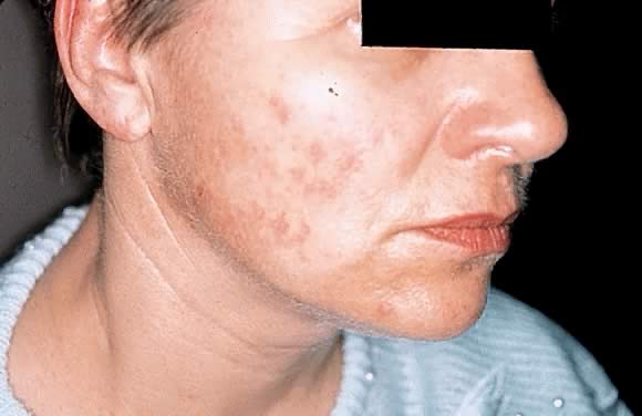 Hyperpigmentation occurs in 90% of women during the course of pregnancy and is more pronounced in darker-haired individuals. Most pregnant women notice a mild generalized hyperpigmentation with accentuation on the nipples, areolae, and the vulvar region. The increase in melanocyte-stimulating hormone, estrogen, and progesterone are believed to play a role in these changes.2 Linea Nigra Linea alba, a line that extends from the xiphoid to the pubic region becomes hyperpigmented during pregnancy and is renamed “linea nigra.” Regression of hyperpigmentation occurs postpregnancy in the majority of cases. Melasma "Mask of pregnancy," or chloasma, occurs in 50% to 70% of pregnant women during the second trimester. Macular pigmentation develops in a symmetrical pattern on the central face, forehead, temples, cheeks, upper lip, and chin (Fig. 1). Similar changes are seen in about 20% of women taking oral contraceptives. This condition usually resolves within 1 year after pregnancy or discontinuation of oral contraceptives; however, about 30% of cases persist. Ultraviolet (UV) exposure significantly contributes to the exacerbation of melasma. In patients with early signs of melasma, avoidance of ultraviolet exposure is very important. In cases in which oral contraceptives are the cause, discontinuation of the medication and other means of contraception should be considered. Treatment overall is very unsatisfactory and consists of sunscreen (UVA and UVB protection) and topical bleaching agents such as hydroquinone creams and tretinoin.2,3 There have been reports of temporally associated cases of congenital malformations with topical tretinoins; thus, use of this topical agent during pregnancy should be discouraged. Currently, retinoids are contraindicated during pregnancy because of teratogenicity and embryotoxicity.4 Conversely, hydroquinone is acceptable for use during pregnancy. Lasers such as the ruby laser (694 nm) and the Q-switched alexandrite laser (755 nm) have shown unpredictable and limited benefit in the treatment of epidermal-dermal pigmented lesions such as melasma.5 Additionally, nevi and ephelides may arise de novo, increase in size, or darken during pregnancy.2 |