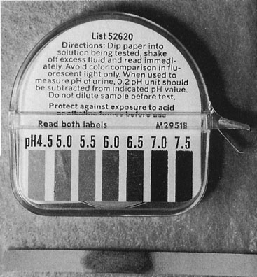 Patients with ruptured membranes usually note a large “gush of fluid” that wets their undergarments or bed sheets. Alternatively, they may experience a steady trickle of small amounts of clear fluid from the vagina, resulting in a constant sense of “wetness” on the perineum. On physical examination, the most reliable method for confirmation of ruptured membranes is direct observation of amniotic fluid in the posterior vaginal vault (pooling). In some instances, gross pooling may not be evident, but amniotic fluid can be seen to leak from the cervix when the patient pushes on her fundus, coughs, or strains. When physical examination is problematic, two simple laboratory tests may be of value. The normal pH of amniotic fluid is 7.0 to 7.5, whereas the pH of sterile urine and vaginal secretions is 5 to 6 and less than 4.5, respectively. Accordingly, if the suspect fluid has a pH of 7 or greater (nitrazine test, Fig. 1), it is most likely amniotic fluid. In addition, when amniotic fluid is allowed to dry on a microscopic slide, it produces a characteristic pattern of arborization, termed ferning (Fig. 2). If both the fern test and the nitrazine test are positive, the diagnosis of ruptured membranes is highly probable. However, contaminating substances in the fluid may affect the reliability of these tests. For example, blood and seminal fluid may produce a false-positive nitrazine test. Sodium chloride in the perspiration from a fingerprint or in some antiseptic solutions may produce a false-positive fern test.10,11 In addition, if amniotic fluid is frankly bloody, the characteristic ferning pattern may be obscured. Interestingly, the presence of dilute concentrations of blood and meconium does not affect the interpretation of the fern test.12 Other laboratory tests have been proposed for confirmation of the diagnosis of ROM, such as intra-amniotic injection of indigo carmine, measurement of amniotic fluid glucose and fructose concentrations, and identification of diamine oxidase in amniotic fluid.11,13 However, as a general rule, these tests are either too invasive, too cumbersome, or too expensive to have routine application in clinical practice. |