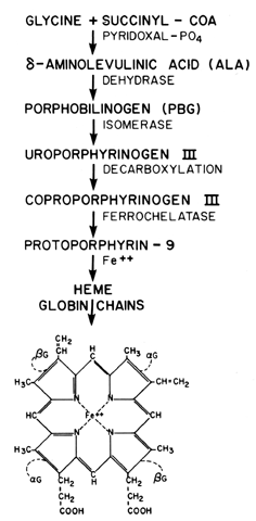 Anemias due to increased loss of erythrocytes can be divided into acute and chronic types. The chronic types exist in patients with intestinal disease, such as parasite infestation, significant hemorrhoids, or peptic ulcer disease. Since the loss of blood is chronic, the actual number of RBCs lost is probably not as important as the amount of iron lost in excess of what is absorbed. This, coupled with the increasing demand of the fetus and expansion of the maternal blood volume, can convert mild iron depletion to IDA during pregnancy. Although these causes are relatively rare in the reproductive age group in this country, careful assessment of iron unresponsive anemias in women from developing countries or with histories suggestive of intestinal disorders should be undertaken. Diagnosis and treatment are directed toward the specific disorder. Anemias resulting from acute blood loss during pregnancy usually have evident etiologies, since external blood loss usually occurs and symptoms are sudden. These disorders can include multiple trauma and spontaneous splenic rupture, as well as disorders of the gastrointestinal, pulmonary, or urinary tract, which may or may not be related to obstetric conditions. Obstetric disorders may occur during early pregnancy (e.g., abortion, ectopic pregnancy, molar pregnancy) or in late pregnancy (abruptio placentae and placenta previa). Blood loss at delivery may also account for significant losses of iron. Estimation of these losses has been measured with dye and isotope techniques, but large errors are common. Factors that lead to an underestimation of external blood loss at delivery include failure to take placental blood volume into account, incomplete measurement of hemoglobin in solution, incomplete extraction of hemoglobin from clots, and hidden bleeding. The average loss, determined by Crtechniques, is between 150 and 250 ml, depending on the patient's parity and the use of episiotomy, while an additional 30 ml is usually sequestered in the placenta. Therefore, approximately 200 ml of packed RBCs, equivalent to 500 ml of whole blood, is lost at the time of delivery. Approximately 230 mg of the 500 mg of iron used to expand blood volume is lost, while the remaining 270 mg is returned to the iron stores. The placental “loss” of iron is variable, averaging 25 mg per pregnancy. The transfer of iron appears to take place by the same iron transferrin complex used in the mother. The placenta, however, appears to function independently, since it stores iron as ferritin and hemosiderin even in the absence of a fetus and after fetal death. The transport of iron across the placenta is unidirectional and preferential, with the fetus accepting iron even when maternal levels are low. This maternal fetal transfer involves an active transport mechanism, since the saturation of transferrin and the plasma iron level are considerably higher in the fetus. Most of the iron transferred across the placenta (70% to 80%) goes to the fetal liver, which serves in a storage capacity as well as a hematopoietic organ, The placenta also functions as a barrier to iron overload; thus, iron toxicity in the fetus by maternal overdose does not occur. Study of the incorporation of placental iron into fetal hemoglobin using radioactive material cannot be undertaken because in early investigations, use of labeled iron was associated with infant malignancies. However, indirect evidence shows heme incorporation into fetal RBCs to be similar to maternal utilization. Diseases in the mother (e.g., infection or inflammation) may decrease the amount of iron transferred, owing to poor storage mobilization and transferrin release. On the other hand, anemia due to iron loss during lactation, FAD, or chronic blood loss does not affect transfer of iron across the placenta. The iron loss in lactation is small and usually averages 1 mg/day. Breast milk contains an iron binding protein similar to transferrin, called lactoferrin. This protein is synthesized in the mammary gland and stored in the ductal lining cells. The secretion of lactoferrin into the breast milk accounts for the iron loss noted in iron sufficient women during lactation. This compound is also bacteriostatic, and thus assists the infant in combating early infection and possibly prevents maternal breast infections. Moreover, since many lactating women do not have menses, the excretion of 1 mg of iron per day is offset by the avoidance of menstrual loss. Therefore, dietary iron supplementation as prescribed during and after pregnancy is usually sufficient to replenish iron stores during lactation. During the postpartum period, acute bleeding problems may also occur owing to uterine atony, genital lacerations, or retained placenta. The acute causes, both obstetric and nonobstetric, are usually best treated with blood transfusion and removal of the offending agent. Obviously, the diagnosis depends on the specific disorder, as does the proper therapy. After the correct diagnosis is made and acute therapy is started, treatment with oral iron is usually indicated. Patients with acute blood loss usually show a normochromic, normocytic cell pattern with normal blood indices, hemoglobin levels, and PCV until after equilibration occurs, a process that may take from 12 to 24 hours. The iron studies are normal. Chronic blood loss, on the other hand, may be subtle enough to reveal only a loss in iron content if the loss in blood cells did not exceed the capacity of the bone marrow to produce the RBCs. In these cases, the chronic disorders would involve the same laboratory findings as IDA. |