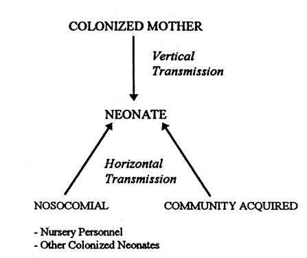Several factors modify the risk of vertical transmission of GBS. Higher neonatal transmission rates occur from women persistently culture-positive and from women with a high concentration of GBS (Table 1).6,7,21 The site of maternal carriage is also important: the rate of vertical neonatal transmission is higher when maternal GBS infection originates from the cervix (89%) compared to the rectum only (65%).5,7