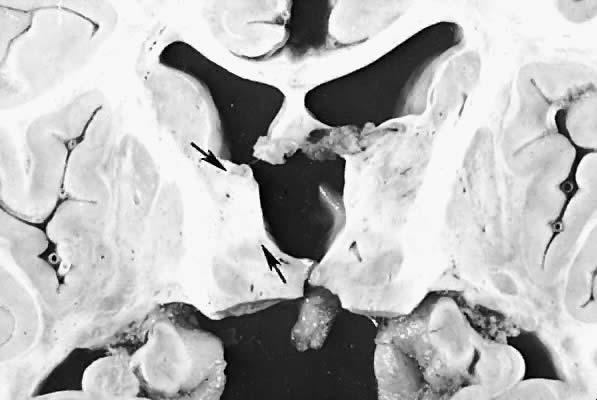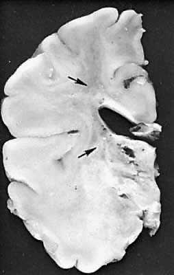 Cerebral injury from hypoxemia, whether it is prenatal, intrapartum, or neonatal, is a significant contributor of neurologic morbidity and mortality in neonates. Perinatal asphyxia occurs in approximately 6 per 1000 term live births.1 There is little agreement about what constitutes fetal asphyxia. No single parameter taken in isolation seems to predict the severity of the hypoxic ischemic injury or the long-term neurologic sequelae. Investigators have shown the inadequacy of the Apgar score as a correlate to significant brain insult.2 Fetal acidosis, meconium staining, late decelerations, and respiratory depression are nonspecific markers of neonatal distress. Signs attributed to asphyxia may be due to a neurologically impaired fetus. Fetal acidemia may be induced by parameters other than hypoxemia, and abnormal fetal heart rate patterns may be the result, rather than the cause, of neurologic impairment. Five principal mechanisms of asphyxia have been described during the antepartum and intrapartum periods: (1) interruption of umbilical circulation, (2) altered placental gas exchange, (3) inadequate maternal perfusion of the placenta, (4) decreased maternal oxygenation, and (5) failure of the infant to transition from fetal to neonatal cardiopulmonary circulation.3 There are many etiologic factors in fetal asphyxia (Table 1). Placental abruption, cord prolapse, and uterine rupture result in an acute, hypoxic-ischemic insult. Partial or intermittent hypoxic-ischemic injury can occur in cases of placental insufficiency. The clinical features of hypoxic-ischemic encephalopathy, however, are nonspecific. TABLE 1. Clinical Factors Associated With Hypoxic-Ischemic Injury Maternal hypotension or hypertension Neurologic signs and symptoms may be observed in the neonate with perinatal asphyxia. It often is difficult to determine the precise timing of insult.4 Whereas an intrapartum event may lead to neurologic signs hours to days later, infants who have sustained a hypoxic insult in utero may have few, if any, clinical abnormalities in the neonatal period. Term infants who suffer an acute asphysic insult resulting in severe long-term neurologic handicaps invariably show a recognizable clinical encephalopathy during the first few days of life.4 A detailed examination will aid in the assessment of severity of hypoxic-ischemic encephalopathy. The spectrum is divided into three classes that have prognostic value.5 Mild encephalopathy is characterized by jitteriness, uninhibited deep tendon reflexes, and hyperalertness. This is not associated with long-term sequelae. Hypotonia, seizures, and lethargy are hallmarks of moderate encephalopathy. The outcome of moderate encephalopathy is more variable. If symptoms persist for longer than 1 week, neurologic sequelae may exist in up to 40%.5 Severe encephalopathy is associated with coma, seizures, brain-stem dysfunction, and increased intracranial pressure. The majority of these infants are affected with long-term sequelae, such as microcephaly, mental retardation, spastic quadriplegia, and seizures. Radiologic examination helps in the assessment of the extent of cerebral injury. Although ultrasound cannot identify specific patterns of injury, it is a portable tool allowing bedside assessment of germinal matrix and intraventricular hemorrhage. It also can detect changes in echogenicity seen with early periventricular leukomalacia in the premature infant. Computed tomographic (CT) scanning is the investigation of choice in the clinical evaluation of the hypoxic-ischemic brain injury of the term newborn.4 Optimal timing of the scan is debated. It often is obtained during the initial evaluation of the asphyxiated infant, but the maximal extent of tissue damage visualized on CT usually is 2 to 5 days after the insult. CT scanning may identify parasagittal injury, focal ischemia, injury to the basal ganglia, and posterior fossa pathology. Although magnetic resonance imaging is the best technique available for evaluating the anatomic structures of the brain as well as myelination pattern, it is difficult to interpret in the newborn because of the high water content of the brain.6 The brain appears hyperintense on T2-weighted images, making it difficult to distinguish from neuropathic changes due to early ischemic insults.6 An electroencephalogram recording also can aid in the evaluation of an asphyxiated infant. A progression of electroencephalographic patterns correlates with the evolution of the clinical hypoxic-ischemic encephalopathy.4 Often, it shows a discontinuous pattern with marked slowing and reduced amplitude. The low-voltage pattern may deteriorate to an isoelectric tracing that parallels the decline in clinical condition. If there is rapid resolution of the electroencephalogram abnormalities, however, prognostic outcome improves.5 Five major neuropathologic patterns of injury are summarized in Table 2. Distribution of the lesions reflects a combination of regional circulation and metabolic factors that change with the gestational age of the infant. Both the degree of myelination and the presence of excitatory amino acid binding sites also may play a role in the pathophysiology of tissue damage.6 The primary lesions seen on autopsy in term newborns are in the cortex and basal ganglia (Fig. 1). In the premature infant, however, lesions generally occur in the germinal matrix and periventricular regions of the brain (Fig. 2). Efforts to resuscitate the infant should be directed toward adequate ventilation and perfusion, correction of accompanying metabolic acidosis, maintenance of normal blood pressure and glucose, and treatment of seizures. Antidiuretic hormone may be secreted inappropriately after a large cerebral insult, and fluid overload should be avoided. Serum osmolarity and sodium concentration should be monitored to avoid the consequence of cerebral edema and seizures. Although antiedema agents may reduce intracranial pressure, it is unclear whe