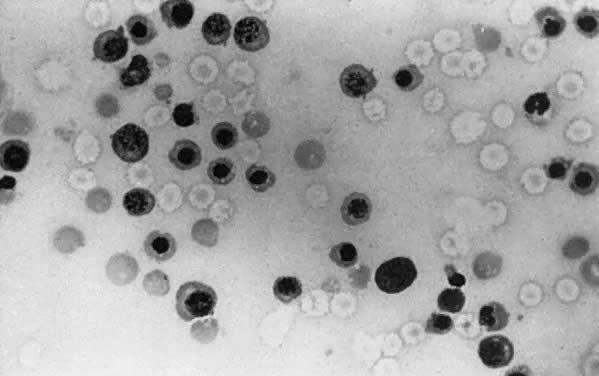 Transfusion Before the discovery of the Rh blood group system, blood transfusion was a common cause of Rh immunization. It is still the most common cause of non-D blood group immunization because transfused blood is compatible only for ABO and D. After blood transfusion, 1% to 2% of people develop blood group antibodies; most are of little consequence. Anti-c, Kell, and occasionally E, C, and Fya may cause erythroblastosis as severe as that caused by anti-D. Fetomaternal Transplacental Hemorrhage Despite prohibition of transfusions of D-positive blood into D-negative people, a significant incidence of Rh immunization persists. Wiener9 theorized that Rh immunization could only be due to the transplacental passage of fetal D-positive RBCs into the circulation of Rh-negative women during pregnancy or at the time of delivery. This theory was proved by Chown.10 After delivery of an anemic D-positive infant, an Rh-negative primipara was shown to have 5% circulating Rh-positive fetal RBCs. Within 20 days after delivery, she developed a strong Rh antibody. Determination of the incidence and size of fetomaternal transplacental hemorrhage (TPH), using the acid elution test of Kleihauer and colleagues,11 is now possible (Fig. 1). The Kleihauer test has allowed the determination of the incidence and size of fetal TPH at varying gestations, at delivery, and after obstetric procedures such as amniocentesis, external version, and manual removal of the placenta. Studies show that 75% of women have a fetomaternal TPH during pregnancy or at the time of delivery. In about half of these women, the TPH does not exceed 0.1 mL of fetal blood. Less than 1% have more than 5 mL, and less than 0.25% have more than 30 mL of fetal blood in their circulations. Certain obstetric situations increase the risk of TPH: antepartum bleeding, toxemia of pregnancy, external version, cesarean section, and manual removal of the placenta. As pregnancy progresses, the incidence and size of fetomaternal TPH increase from less than 0.1 mL in about 10% of women in the first trimester to 45% in the third trimester. Amniocentesis, particularly if not carried out under ultrasound guidance, is a hazard (11.2% incidence of TPH after amniocentesis before the advent of ultrasound in one series).12 A significant number of abortions, both spontaneous (5%) and therapeutic (20% to 25%), are associated with fetomaternal TPH. The D antigen is well developed by 30 to 45 days' gestation. After therapeutic abortion, about 4% of women may have TPH in excess of 0.2 mL of fetal blood. |