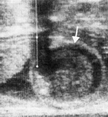 After subsequent IPT, estimations of residual circulating donor hemoglobin concentrations for each fetal transfusion at any period after the last transfusion can be made and added together to give the estimated donor hemoglobin level at that gestation. These calculations can be used to determine the time for the next fetal transfusion (or for delivery), with the requirement that the donor hemoglobin level be kept above 10 to 11 g/dL at all times. Because one transfusion rarely raises donor hemoglobin levels above 10 g/dL, a second transfusion is carried out 9 to 12 days after the first. Subsequent transfusion intervals are 3.5- to 4-week intervals, with the last transfusion rarely being given after 32 weeks' gestation. Delivery is carried out 3.5 to 4 weeks after the last transfusion, usually between 34 and 36 weeks' gestation. Blood for Intrauterine Transfusion Group O, Rh-negative, Kell-negative RBCs are used for IUT if the alloantibody is anti-D. If the alloantibody is non-D in the Rh system, group O, Kell-negative, maternal serum compatible RBCs are used. If the alloantibody is outside the Rh system, group O, Rh-negative, Kell-negative RBCs are used that are missing the offending antigen to which the mother is alloimmunized. The blood should have been drawn from the donor within 48 to 96 hours of the transfusion. The donor RBCs are carefully cross-matched against maternal serum; these women are prolific antibody producers, some having as many as four to six alloantibodies other than their primary antibody. In such circumstances, finding a compatible donor may be difficult. Before the transfusion, the unit is tightly packed, and all plasma and buffy coat are removed. Immediately before the IUT, 10 to 15 mL of sterile, isotonic saline is added so that the hemoglobin and hematocrit of the packed RBCs are 27 to 30 g/dL and 85% to 90%, respectively. The donor unit must be human immunodeficiency virus negative, hepatitis C virus negative, and HBsAg negative and should be irradiated, although the risk of graft-versus-host disease occurring if nonirradiated blood is used is small. The Intrauterine Transfusion Team The number of candidates for IUT is decreasing as the number of immunized Rh-negative women declines because of the success of Rh prophylaxis. IUT techniques, either intraperitoneal or direct intravascular, appear simple, but they are not. Complete management of the immunized mother and baby, before and after birth, requires not only an experienced obstetrician but also neonatal, ultrasound, and laboratory personnel and services of the highest order. Procedures should be carried out only in a tertiary-level perinatal center. A team approach is essential. Each center in which fetal transfusions are performed should treat at least five or six fetuses annually, on whom 15 to 20 transfusions are carried out. To reach this volume of patients, the IUT team must have all transfusion candidates referred from a population base of 6 million (75,000 to 90,000 deliveries per year). Only under such circumstances can the team's expertise in IUT and overall management of severely affected fetuses and infants with hemolytic disease be maintained. Fetal Transfusions of the Hydropic Fetus Although the goals are to predict impending hydrops and to prevent it by beginning fetal transfusions before hydrops has developed, in 28% to 33% of cases, hydrops is present at first transfusion because of late referral, or it develops between the first and second IPTs because one IPT does not raise donor hemoglobin levels high enough to shut off hepatic erythropoiesis and interrupt the hepatic chain of events that leads to the development of ascites and hydrops fetalis. Although direct intravascular transfusion (IVT) is the procedure of choice when hydrops is encountered, significant salvage of hydropic fetuses has been produced with IPT in the past. In the ultrasound era in Winnipeg, 60% of hydropic fetuses (18 of 30) were salvaged with IPT; however, none of eight moribund, nonbreathing hydropic fetuses subjected to IPT survived. Hydrops fetalis may be reversed by fetal transfusions. Reversal is more common when hydrops is found at the second IPT for the first time. Reversal is common when hydrops is encountered at the first direct IVT. As donor hemoglobin levels rise after transfusion, erythropoietin levels fall. If the fetus remains alive, hepatic erythropoiesis diminishes, intrahepatic circulation improves, portal and umbilical venous pressures fall, hepatocellular function improves, serum albumin levels rise, and ascites and fetal anasarca disappear. Direct Intravascular Fetal Transfusion Pioneering attempts at direct IVT into either a fetal or placental vessel approached through a hysterotomy incision were attempted in the mid-1960s.53,54,55 The results were abysmal because the women almost invariably went into labor. In 1981, Rodeck and associates56 introduced direct transfusion through a fetoscope. Few others have achieved his skill with the fetoscope. Blood, meconium, or turbidity in the amniotic fluid makes fetoscopic visualization of the fetal blood vessels impossible. With the advent of fetal blood sampling, by the early to mid-1980s44 it became possible to follow the sampling procedure with direct IVT.57,58,59,60,61 Under ultrasound guidance, the tip of a 22- or 20-gauge spinal needle is introduced into a umbilical blood vessel, preferably the vein but occasionally the artery, at its insertion into the placenta and rarely at its insertion into the fetal abdomen. Advantages of Fetal Blood Sampling and Intravascular Fetal Transfusion As stated earlier, in the absence of hydrops, direct measurement of fetal blood parameters is the most accurate method of determining the severity of hemolytic disease, far more accurate than amniotic fluid ΔOD 450 measurements and ultrasonographic assessments. The latter two parameters, however, combined with past history and maternal antibody titers, can identify the fe
