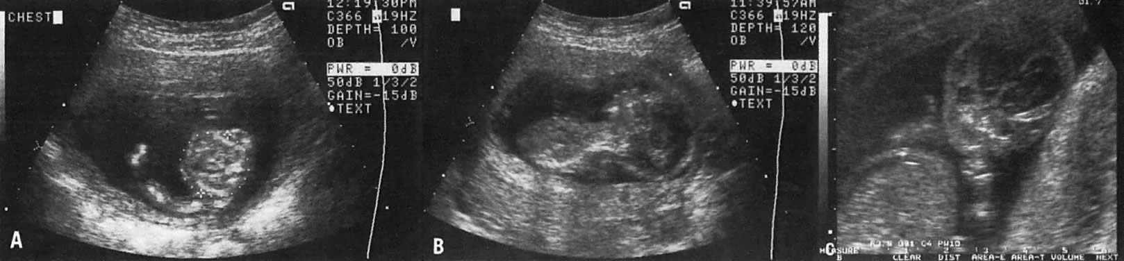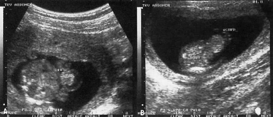 The recent development of high-resolution ultrasound equipment has markedly improved the diagnostic accuracy of ultrasound. In particular, the introduction of high-frequency vaginal probes has enabled early diagnosis of certain fetal abnormalities from the 12th to 14th week of pregnancy. Such early testing is of special importance for women with a history of pregnancies associated with birth defects. The frequency with which different organ systems can be imaged is shown in Table 1.1 The sequential appearance of fetal neural structures during the first trimester of pregnancy is shown in Table 2.2