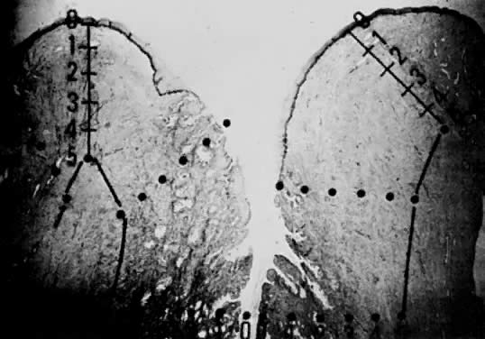 A generally accepted definition of microinvasive carcinoma is a lesion that is predominantly intraepithelial with a focus of invasion of microscopic dimensions confined to the superficial stroma. Gland involvement does not remove the lesion from the category of intraepithelial neoplasia. There is general agreement that disruption of the basement membrane is the criterion by which microinvasive carcinoma can usually be identified. This basement "membrane” has been demonstrated by Luiebel and colleagues52 using electron microscopy. He noted it to be complete in CIN III but straighter than in normal squamous epithelium. In invasive carcinoma, it was usually absent or present in an imperfect form. Where the membrane was absent, small cytoplasmic protrusions of carcinoma in the adjacent stroma could be seen, apparently representing invasion by malignant neoplastic cells. Ashworth and co-workers53 confirmed these electron microscopic findings and discussed histochemical procedures including the periodic acid-Schiff reaction alone or in combination with other techniques. He added that invasive cell groups are also found partially or completely invested by a basement membrane that appears to be newly formed by those cells. The typical histologic picture of early stromal invasion below CIN III may show some differentiation of the invasive peg. The cells are rich in cytoplasm and the nuclei larger and clearer than those of the intraepithelial portion of the lesion. There may be cells in various stages of degeneration with some leukocytic infiltration. In hematoxylin-eosin preparations, these pegs may appear eosinophilic and stand out well from the basophilic matrix (Fig. 1) with a dense round cell infiltration surrounding the invasive peg. Tapering or branching small tongues of epithelial cells, as well as the formation of narrow cell columns or the appearance of cell groups that seem to be invading the stroma may be considered criteria of invasion (Fig. 2). On the other hand, the formation of very large epithelial pegs can only be regarded as suspicious of early invasion.54 Disagreement occurs in the specific definition of microinvasive carcinoma regarding the exact depth of invasion, presence or absence of confluence, or vascular space involvement. There is fairly general agreement that the invasion should be 5 mm or less if the lesion is to be considered microinvasive. Averette and colleagues12 used penetration beneath the basement membrane of less than 1 mm as the criterion. Some authors consider confluence1,3,14,16,17 and vascular involvement55,56 as important factors that necessitate removing patients from the microinvasive category. Using a hysterectomy specimen and a micrometer, Averette12 demonstrated the variable distances into the stroma from the basement membrane of ectocervix, squamocolumnar junction, and distant endocervix (Fig. 3). He showed the variable thickness of normal epithelium, which may cause variations in the relative stromal depth when a 1-mm point is measured from the basement membrane (Fig. 4). In addition, vascular channels are shown less than 1 mm beneath the epithelium (Fig. 5). These figures suggest the following: The depth into the stroma may vary depending on the point of measurement. Duncan and Walker57 found vascular involvement in only 2 of 76 patients with invasion of less than 3 mm, whereas vascular involvement was apparent in 8 of 15 patients who had stromal invasion in the 3 mm to 5 mm depth range. Only 2 of 91 patients had metastatic disease, both with vascular involvement. Vascular involvement was present in only 6 of 135 patients reported by Hasumi and colleagues58: there was no vascular involvement in patients with invasion up to 1 mm but 3 of 45 (6.7%) with invasion of 1.1 mm to 3 mm and 3 of 29 (11.1%) with invasion of 3.1 mm to 5 mm had vascular involvement. None of the six cases with vascular invasion had nodal metastasis. Sedlis and colleagues21 reported vascular space invasion by tumor in 31 of 132 patients (23%); this increased with depth of penetration. There was a strong correlation between both residual tumor in the hysterectomy specimen and vascular space involvement with deep stromal penetration and extensive lateral spread. No positive lymph nodes were observed in the 74 patients treated by radical hysterectomy, and recurrence was noted in two patients with extensive vascular involvement. Simon20 and Creasman59 reviewed the recent literature in regard to lymph vascular space and lymph node involvement. In the study by Simon,20 54 (14.3%) of 378 women subjected to radical surgery and pelvic lymphadenectomy had lymph vascular space involvement and only 1 of the 54 (1.9%) had a node metastasis. None of the 213 women with long-term follow-up had either local recurrence or died from tumor. In Creasman's59 analysis of 267 women treated in a similar surgical fashion and with microinvasive tumors invading below the basement membrane to 3 mm or less, 39 had lymph vascular space involvement and 1 (without lymph vascular involvement) had lymph node metastasis. Of 105 women with tumors invading between 3.1 and 5 mm, 49 (47%) had lymph vascular permeation, 1 of which had lymph node metastasis. Of the 56 patients without lymph vascular involvement, 6 (11%) had positive nodes. Thus, it appears that in relationship to microinvasive carcinoma of the cervix, the presence of tumor cells in lymph vascular spaces does not support the theory that lymph node metastases are imminent. Additionally, there is disagreement as to what constitutes a lymph vascular space. Confluence appears to increase with increasing depth of penetration.21,58,60 However, several authors believe this factor to be nonprognostic.21,60 Burghardt19 calculated tumor volume by measuring the depth, width, and length of the tumor. There were no lymph node metastases in 12 patients with an area of up to 99 mm2, which corresponded to 1000 mm3. In larger tumors, the frequency of metastasis incre