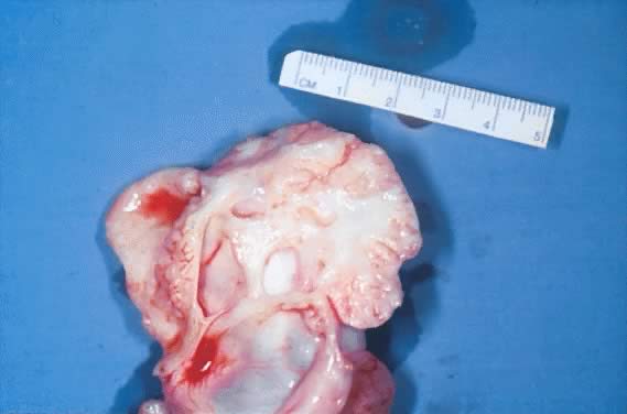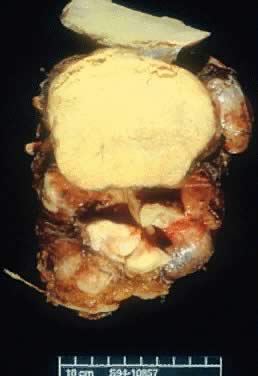 cyst inner lining. They usually are firm, yellow-tan with a brown discoloration, and