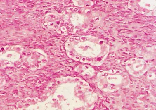 cells surrounding the glandular structures have been designated by some
