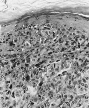 The differential diagnosis of melanoma is extensive and includes typical junctional and congenital nevi, atypical vulvar nevi, squamous cell carcinoma, extramammary Paget disease, and soft tissue tumors.69 Immunohistochemistry can be very useful in distinguishing melanomas from nonmelanocytic tumors in that melanomas are usually immunoreactive for S-100 and melanoma-specific antigen (HMB-45), Melan-A, and other melanoma markers but nonimmunoreactive for cytokeratin.70 |