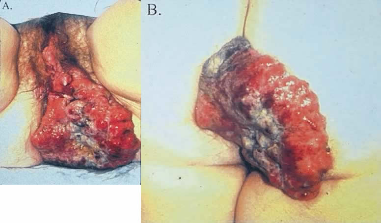 cisplatin (4 mg/m2 The GOG has recently published results of the largest prospective study exploring the feasibility of organ preservation with concurrent chemotherapy and radiation. Seventy-three patients with T3 and T4 tumors received split-course radiation and concurrent cisplatin (50 mg/m2) on day 1 with 5-FU (1000 mg/m2) as a continuous infusion over the first 4 days. Radiation therapy was divided into 2380 cGy courses, separated by a 1- to 2-week planned break depending on the degree of perineal reaction. Treatments were given twice daily at 170 cGy per fraction. Inoperable groin nodes and the lower pelvic lymph nodes were included in the radiation portals. Surgical excision and bilateral inguinofemoral dissection was planned in all patients. No visible tumor was seen at surgery in 33 patients. Of the remaining 38 patients with gross residual disease, only 2 were unresectable and only 5 had positive margins. With a median follow-up of 50 months, 55% of the patients were alive and without evidence of disease. Toxicity was acceptable and was confined to expected perineal reactions and wound complications.43 The most obvious benefit of organ preservation is improved functional outcome; however, the psychologic impact of cosmetic salvage cannot be overstated. Figure 1 shows a patient with a massive vulvar cancer. Often patients do not seek care until disease has reached an advanced stage because of embarrassment and fear. Figure 2 shows the same patient following combined chemotherapy and radiation treatment. Although preliminary data have been very encouraging, longer follow-up is needed. The clinical experience with organ preservation strategies during the past 10 years has shown efficacy and acceptable toxicity and should provide the impetus for future prospective trials. |