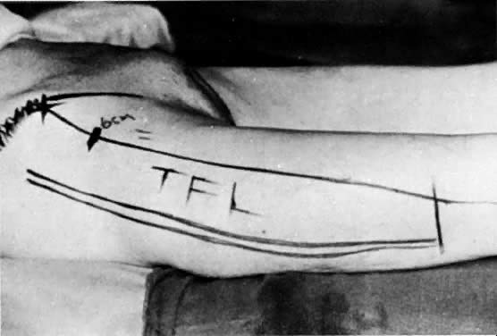 When large defects of the pelvis, vagina, vulva, groin, or perineum need closure, elaborate reconstructive techniques are used. The development of flaps with a single-muscle vascular pedicle was a hallmark achievement in reconstructive surgery. By covering large defects lacking subcutaneous tissue with muscle flaps, a better cosmetic result was obtained. Patients were able to ambulate earlier and recovery was accelerated. The presence of muscle in the flap decreased the infection rate and allowed the superficial skin to maintain better nutrition. Function is not impaired by mobilization of muscle flaps from donor sites. Among the choices of myocutaneous flaps used to cover large defects are the rectus abdominis muscle24,25 used for pelvic or vaginal defects, the gracilis flap26–28 used for vaginal and pelvic defects, and the tensor fascia lata29 used for vulvar defects. Among the complications of myocutaneous flap application are hematoma formation, peripheral tissue necrosis, decreased flap take, redundant flap skin, painful thigh scars, and leg hyperesthesia. Gracilis Flap The gracilis flap technique is described in many publications.26–28 Careful measurement of flap length before surgery is an important step when using this method of therapy. Usually, the flap should not be longer than 24 cm or wider than 7 cm. During surgery, the blood supply of the flap can be gauged by the intravenous injection of 10 mL of a 10% fluorescein solution (resorcinolphthalein).30 The flap is then inspected under a Wood's ultraviolet light. Spotty fluorescence of the skin and underlying tissue usually indicates an intact blood supply. The blood supply is from the medial femoral circumflex artery, a branch of the deep femoral artery. Groin, vulvar, perineal, and vaginal defects can be covered with this flap (Figs. 12 to 14). One disadvantage to the gracilis flap technique is that it requires two flaps to create a neovagina, and the incisions can be unacceptable to the patient. In addition, a rare gracilis flap complication is the occurrence of painful knees due to inclusion of the saphenous nerve when the gracilis muscle is reflected. Tensor Fasciae Latae Flap Would breakdown and infection occur in up to 50% of patients after radical vulvectomy and inguinal node dissection? The avoidance of primary closure and the introduction of myocutaneous grafting procedures have reduced the incidence of these two complications. In addition, postoperative morbidity has decreased and hospital stay has been reduced dramatically. The tensor fasciae latae muscle lies between the gluteus medius and the sartorius muscle (Fig. 15). It has a singular vascular pedicle from the lateral circumflex femoral artery, which is a branch of the deep femoral artery. The muscle and its blood supply can cover a defect 40 cm in length and 15 cm in width. Superimposed skin is retained when this graft is used to close groin, vulvar, and perineal wounds (Figs. 16 and 17). As mentioned, the tensor fasciae latae flaps have been used to cover inguinal defects at the time of radical vulvar surgery.29 Depression of the scar with bulging of the groins has been the main disadvantage of this flap. Other disadvantages include lateral instability of the knee, difficulty closing the incision, and the complications of myocutaneous flaps listed previously. Gluteal, Perineal, and Thigh Flaps These myocutaneous flaps are created from the buttocks, perineum, or thigh to cover gaping areas present after radical or ultraradical pelvic or vulvar and groin surgery. These flaps can be substituted for gracilis or tensor fasciae latae flaps or be used in lieu of them. Additionally, the perineal flaps can be used as an adjunct to any of the other myocutaneous flaps. Use of the medial aspect of the thigh to create flaps to cover large denuded vulvar areas has been reported31 (Fig. 18). Abdominal-wall flaps, using the rectus muscle, are replacing some of these flaps.24,25 |