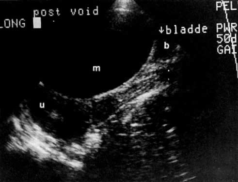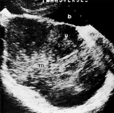 Background Endometrial carcinoma is the most common gynecologic cancer: 34,000 new cases were estimated for 1996, with 6000 patients dying during the same period. Peak age was 55 to 65 years. Risk factors include obesity, nulliparity, estrogen replacement, estrogen-secreting ovarian tumors, late-onset menopause, diabetes mellitus, anovulatory cycling, polycystic ovaries, and adenomatous hyperplasia. Patients with endometrial cancer generally present with uterine bleeding. Most endometrial cancers are adenocarcinomas. Uterine sarcomas constitute less than 10% of uterine body tumors and are considered separately because of their different clinical behavior.42,43 MRI and Ultrasound Anatomy On MRI, uterine zonal anatomy is best depicted with T2-weighted imaging. Three distinct zones are seen (see Fig. 1A and Fig. 1B):