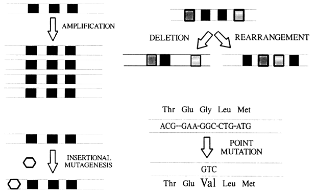 In view of the crucial role that proto-oncogenes and tumor suppressor genes play in normal cell growth and differentiation, it is a logical corollary that the abnormal expression of these genes is causally related to the uncontrolled cellular proliferation that characterizes the neoplastic phenotype. Cellular transformation requires the mutation of several genes via a multistep process. Genetic mutations can result from gene amplification, point mutations, insertional mutagenesis, and deletions or rearrangements, or both (Fig. 2).
