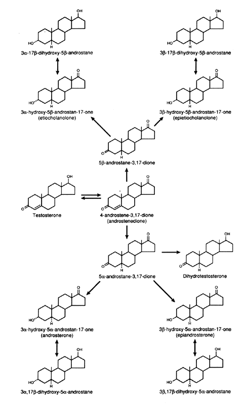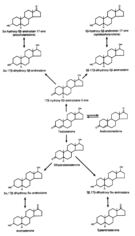 Androgen metabolism, in the broadest sense, includes the secretion, transport, tissue uptake, peripheral transformation, and excretion of C-19 steroids. Increased knowledge of androgen metabolism has widened the concept of the function of steroid metabolism to include more than just inactivation and excretion. Metabolic transformation of secreted androgens produces steroids with variable effects and potency; some, in fact, are estrogens. Androgen metabolism varies with sex, age, thyroid status, and weight and from tissue to tissue. Androgenicity is not due exclusively to the androgen production rate but is also influenced by the process of metabolism. The interactions of those aspects of androgen metabolism that decrease or enhance androgenic effects are emphasized. |