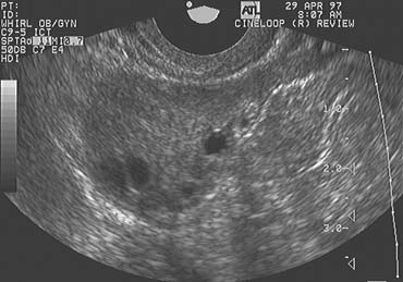 In the context of ongoing research in tertiary care centres, serial TVUS examinations performed during the follicular phases of one or more menstrual cycles have helped to define both normal and abnormal patterns of follicular growth and development.2,3 Although the logistical challenges of serial TVUS examinations can be somewhat daunting, a consistent pattern will usually become apparent within the span of a few cycles. Normal Follicular Growth and Development The population of ovarian follicles can be evaluated at any time during the menstrual cycle, but the interval of greatest interest spans the late follicular phase during the final stages of preovulatory follicular development. The dominant follicle destined to ovulate can be identified by its size on approximately cycle day 7 and thereafter grows at an average rate of 2 mm per day until it reaches full maturity at a diameter of approximately 22 mm (Fig. 1).2,4,5,6,7,8 In the classically normal menstrual cycle, ovulation occurs on or at approximately cycle day 14 and menses begins approximately 14 days thereafter.2,4,5,6 Although ultrasound has been used to detect ovulation in women for a number of years,9 the ability to observe the physical rupture of the preovulatory follicle, escape of the follicular fluid, and extrusion of the cumulus/oocyte complex have only recently been clearly demonstrated (Fig. 2).10 The site at which ovulation will occur can be readily identified up to a week in advance.5,10 The sequence of ultrasonographic events that surrounds ovulation occurs over an average of approximately 10 minutes, but the interval varies, lasting from less than 1 minute to more than 20 minutes in duration. After ovulation, in normal cycles, the collapsed follicle gives rise to the corpus luteum. The corpus luteum then becomes the dominant ovarian structure and can be easily recognized across the remainder of the cycle (see Fig. 2).5,10 Use of Transvaginal Ultrasonography to Determine the Optimum Time for Artifical Insemination Increasingly, TVUS monitoring of follicular development is being used to better and more precisely define the time of ovulation and the optimum time to perform IUI, when indicated, in both spontaneous and stimulated cycles. The accuracy of TVUS in defining the time of ovulation is far superior to estimates based on results of monitoring basal body temperature (BBT) or urinary luteinizing hormone (LH) excretion. Given the relatively brief interval for which sperm remain viable after IUI and the considerable costs involved, serial TVUS examinations may help to maximize both the effectiveness and efficiency of such advanced forms of treatment. Abnormal Follicular Growth and Development Careful serial TVUS examinations during the latter stages of preovulatory follicular development and during the interval immediately after ovulation in both normal fertile women and those with idiopathic infertility suggest that subtle but distinct abnormalities of follicular growth, development, and ovulation occur and may often go unrecognized. The luteinized unruptured follicle (LUF) and the follicular cyst are two distinctly abnormal patterns of follicular development that may represent subtle forms of subtle ovulatory dysfunction. The LUF syndrome is characterized by a preovulatory follicle that grows and develops in a normal pattern but does not collapse at the expected time of ovulation. Ovulation does not, in fact, occur and the oocyte presumably remains trapped within the follicle. The follicular walls subsequently thicken and increase in density much like is seen after a normal ovulation, the follicular margins become less distinct, and the structure persists for the duration of the cycle, regressing in a manner very similar to that of a normally formed corpus luteum (Fig. 3).11,12 Other indices of ovulation (basal body temperature, serum progesterone concentration) remain normal; the time and character of the subsequent menses also are most often entirely normal. The follicular cyst is recognized when the preovulatory follicle grows to a diameter beyond those typically observed before ovulation but does not collapse and persists for an interval of several days before gradually regressing at a pace similar to that at which it grew. In contrast to the LUF, there is no sonographic evidence of luteinization. The walls of the follicular cyst do not thicken, increase in density, or become indistinct. Instead, they remain thin, and follicular margins are still sharply defined. Menses generally follow at or near the expected time, although the duration and character of flow is more variable. Used in combination with serial TVUS examinations, serum estradiol determinations may provide even greater insights into the quality of follicular growth and development and reveal abnormalities that would otherwise go unrecognized by either method alone. TVUS examinations may demonstrate that normally rising serum estradiol concentrations reflect the combined contributions of a large number of small follicles measuring 5 to 10 mm diameter rather than the development of a single dominant preovulatory follicle. Conversely, a late follicular phase TVUS examination may reveal a follicle having the diameter normally expected immediately before ovulation, but an abnormally low estradiol concentration may indicate it is unlikely to contain a normal or mature oocyte and may be expected to regress (become irregular in contour and progressively decrease in size) over the ensuing week. At present, such careful monitoring of follicular growth and development in natural cycles remains largely in the realm of ongoing clinical research and has limited applications in clinical care. Further research, to include investigations aimed at defining and correlating the microvascular characteristics of individual follicles with patterns of growth and ovulation or regression will surely expand our current understandings of follicular dynamics and ultimately ma