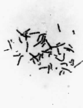 Cells in tissue culture are prepared for chromosome analysis by the sequential addition of Colcemid®, which prevents spindle fiber formation, thereby arresting cells in the metaphase stage of mitosis; hypotonic solution (water or 0.7 M potassium chloride), which causes water to enter the cell, swelling the nuclei and separating chromosomes from one another so that they can be studied effectively after staining; fixative solution, usually a combination of methanol and acetic acid, which preserves the chromosomes permanently; and staining solutions that produce various banding patterns along the chromosome arms that enable each chromosome to be unequivocally identified. The most common staining treatments involve exposing the cells to an enzyme (trypsin or pancreatin), followed by Giemsa stain to produce G bands. Cells cultured in suspension (e.g. lymphocytes, ascites, bone marrow cells) can be processed by addition of Colcemid® and hypotonic solution to the culture media, followed by fixative, and, before staining, transfer from solution to a microscope slide. For tissue culture, cells can be grown attached to the surface of coverslips or directly on the microscope slide and processed completely in situ. The in situ method provides a relatively accurate assessment of how many independent cells from the original source have been analyzed, assuming that each colony was derived from one cell or, at most, a few cells. |