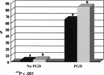The data generated worldwide have made PGD an established technique that is offered to patients with a poor prognosis of full-term pregnancy in the hope of improving their reproductive chances. Several studies have been done and others are in progress aimed at demonstrating whether a real advantage derives from the application of PGD compared with conventional treatment. An answer will come soon, but some valuable information is already available, for example, from the analysis of the history presented by 111 on-term pregnancies obtained after PGD. These couples had previously performed 187 cycles obtaining 14 pregnancies, of which 3 went to term and 11 miscarried. They also had had 58 spontaneous pregnancies with 6 delivered and 52 ended in abortion. A calculation was made of the pregnancy and implantation rates derived after PGD and compared with those of conventional treatment cycles; the results are strongly in favor of PGD (Fig. 8). This information cannot be disregarded when pros and cons of PGD are presented to patients, keeping in mind that the final goal is achieving a healthy pregnancy. |
