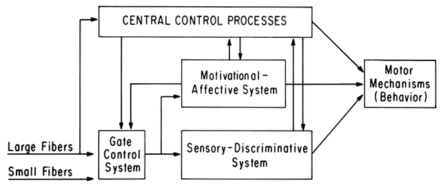 Merskey defines pain as “an unpleasant sensory and emotional experience associated with actual or potential tissue damage or described in terms of such damage.”1 The traditional specificity theory of pain supposes that the intensity of pain is proportional to the amount of tissue damage present. However, psychologic data that document the influence of cultural background, personality style, attention, and the meaning of the pain to the individual,2 and neurologic data that report on new pains that emerge after the resection of nerve supply to painful areas,3 render this theory inadequate. In its place, more recent research has focused on the multidimensional nature of pain, with increasing attention directed to the psychologic influences on the experiencing and reporting of pain. In the acute pain situation, such as that associated with clear-cut pelvic inflammatory disease, ectopic pregnancy, and similar disorders, an understanding of the psychologic and cultural factors in pain reporting may be of interest, but clinical judgment is more often swayed by laboratory data and physical findings. Hence, in dealing with a woman infected with Neisseria gonorrhoeae, an appreciation of the patient's personality will help the physician-patient relationship and is important in promoting patient compliance, but it will not often be a major factor in deciding which antibiotic to prescribe. Once a painful condition of almost any type persists beyond a few months, a more complex model of pain perception is needed to guide our diagnostic efforts and to understand the effects of surgical, medical, and psychologic treatments. The gate theory of pain perception, although itself imperfect, provides such a model.4 |