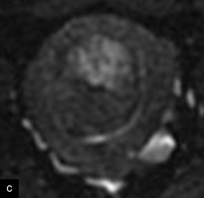 Magnetic resonance imaging (MRI) may help in the preoperative evaluation of uterine masses, when ultrasound findings are inconclusive. MRI offers higher accuracy in soft-tissue contrast, a larger field of view, diffusion imaging and multiplanar capabilities.15 A recent consensus statement has provided a standardized approach to MRI assessment, emphasizing its role in distinguishing uterine sarcomas/STUMP from benign leiomyomas.15 Features suggestive of malignancy include irregular margins; heterogeneous and high signal on T2 weighted imaging; and hemorrhagic and necrotic changes, with central non-enhancement, hyperintensity on diffusion-weighted imaging (DWI), and low values for apparent diffusion coefficient (ADC)15,25,39,40,41 (Figure 7). Diagnostic algorithms have been proposed to support MRI interpretation in differentiating between benign and malignant uterine lesions, and recent studies have explored the use of artificial intelligence to further enhance diagnostic accuracy.42,43,44 Emerging technologies, including radiomics and machine learning, show promise in improving diagnostic precision, although standardization and external validation remain essential.39,45