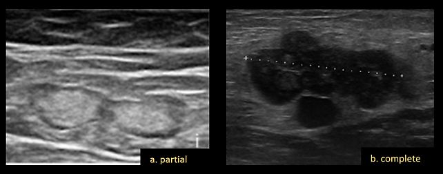 - Nodal-core sign: defined by the visibility of both the hilum and medulla. Absence may indicate metastatic replacement, though partial presence may still occur (Figure 4).