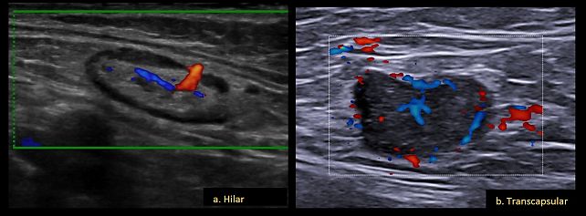 - Pay special attention to cortical thickening, inhomogeneous echostructure, capsular disruption and transcapsular vascularization, as these are strong indicators of metastatic involvement.