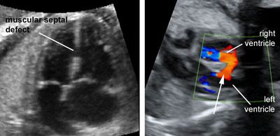 Reference(s):Paladini D, Palmieri S, Lamberti A, Teodoro A, Martinelli P, Nappi C. Characterization and natural history of ventricular septal defects in the fetus. Ultrasound Obstet Gynecol 2000;16(2):118–22. PubMed PMID: 11117079. Axt-Fliedner R, Schwarze A, Smrcek J, Germer U, Krapp M, Gembruch U. Isolated ventricular septal defects detected by color Doppler imaging: evolution during fetal and first year of postnatal life. Ultrasound Obstet Gynecol 2006;27(3):266–73. PubMed PMID: 16485323.