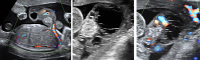 Reference(s):Blaas HG, Eriksson AG, Salvesen KA, Isaksen CV, Christensen B, Møllerløkken G, Eik-Nes SH. Brains and faces in holoprosencephaly: pre- and postnatal description of 30 cases. Ultrasound Obstet Gynecol 2002;19(1):24–38. PubMed PMID: 11851965. Blaas HG. Holoprosencephaly at 10 weeks 2 days (CRL 33 mm). Ultrasound Obstet Gynecol 2000;15(1):86–7. PubMed PMID: 10776022. Blaas HG, Eik-Nes SH, Vainio T, Isaksen CV. Alobar holoprosencephaly at 9 weeks gestational age visualized by two- and three-dimensional ultrasound. Ultrasound Obstet Gynecol 2000;15(1):62–5. PubMed PMID: 10776015.