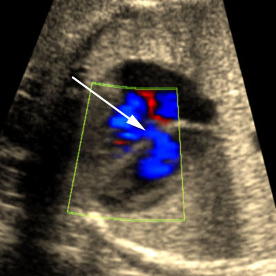 Reference(s):Rembouskos G, Cicero S, Longo D, Sacchini C, Nicolaides KH. Single umbilical artery at 11-14 weeks' gestation: relation to chromosomal defects. Ultrasound Obstet Gynecol 2003;22(6):567–70. PubMed PMID: 14689527. Raio L, Ghezzi F, Di Naro E, Cromi A, Buttarelli M, Sonnenschein M, Dürig P. Ductus venosus blood flow velocity characteristics of fetuses with single umbilical artery. Ultrasound Obstet Gynecol 2003;22(3):252–6. PubMed PMID: 12942496. Farrell T, Leslie J, Owen P. Accuracy and significance of prenatal diagnosis of single umbilical artery. Ultrasound Obstet Gynecol 2000;16(7):667. PubMed PMID: 11169377. Geipel A, Germer U, Welp T, Schwinger E, Gembruch U. Prenatal diagnosis of single umbilical artery: determination of the absent side, associated anomalies, Doppler findings and perinatal outcome. Ultrasound Obstet Gynecol 2000;15(2):114–7. PubMed PMID: 10775992. Raio L, Ghezzi F, Di Naro E, Franchi M, Brühwiler H, Lüscher KP. Prenatal assessment of Wharton's jelly in umbilical cords with single artery. Ultrasound Obstet Gynecol 1999;14(1):42–6. PubMed PMID: 10461337. Persutte WH, Hobbins J. Single umbilical artery: a clinical enigma in modern prenatal diagnosis. Ultrasound Obstet Gynecol 1995;6(3):216–29. Review. PubMed PMID: 8521073. Jauniaux E. The single artery umbilical cord: it is worth screening for antenatally? Ultrasound Obstet Gynecol 1995;5(2):75–6. PubMed PMID: 7719870. Catanzarite VA, Hendricks SK, Maida C, Westbrook C, Cousins L, Schrimmer D. Prenatal diagnosis of the two-vessel cord: implications for patient counselling and obstetric management. Ultrasound Obstet Gynecol 1995;5(2):98–105. PubMed PMID: 7632225.